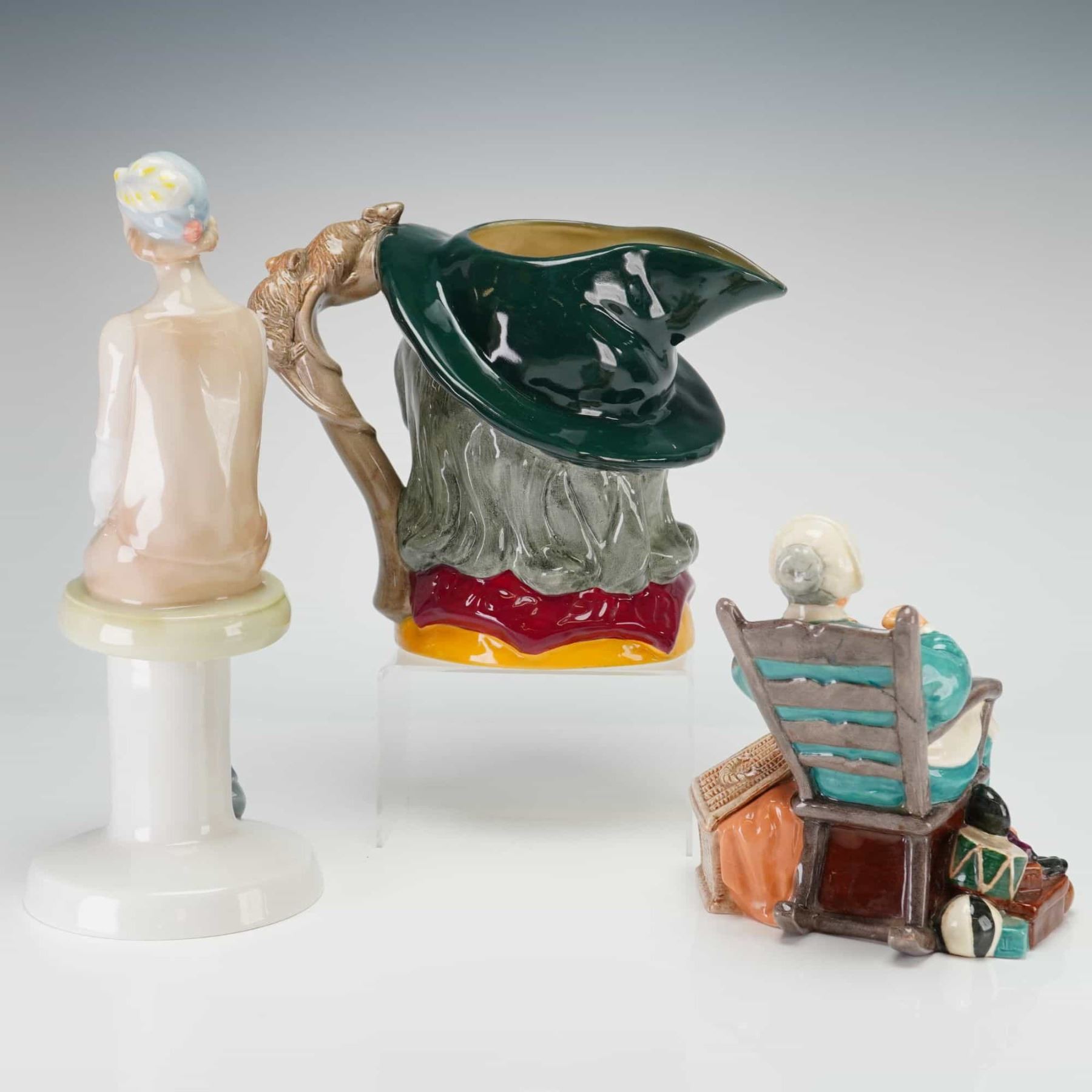 Lot 340 3pc Royal Doulton Figurines and Character Jug