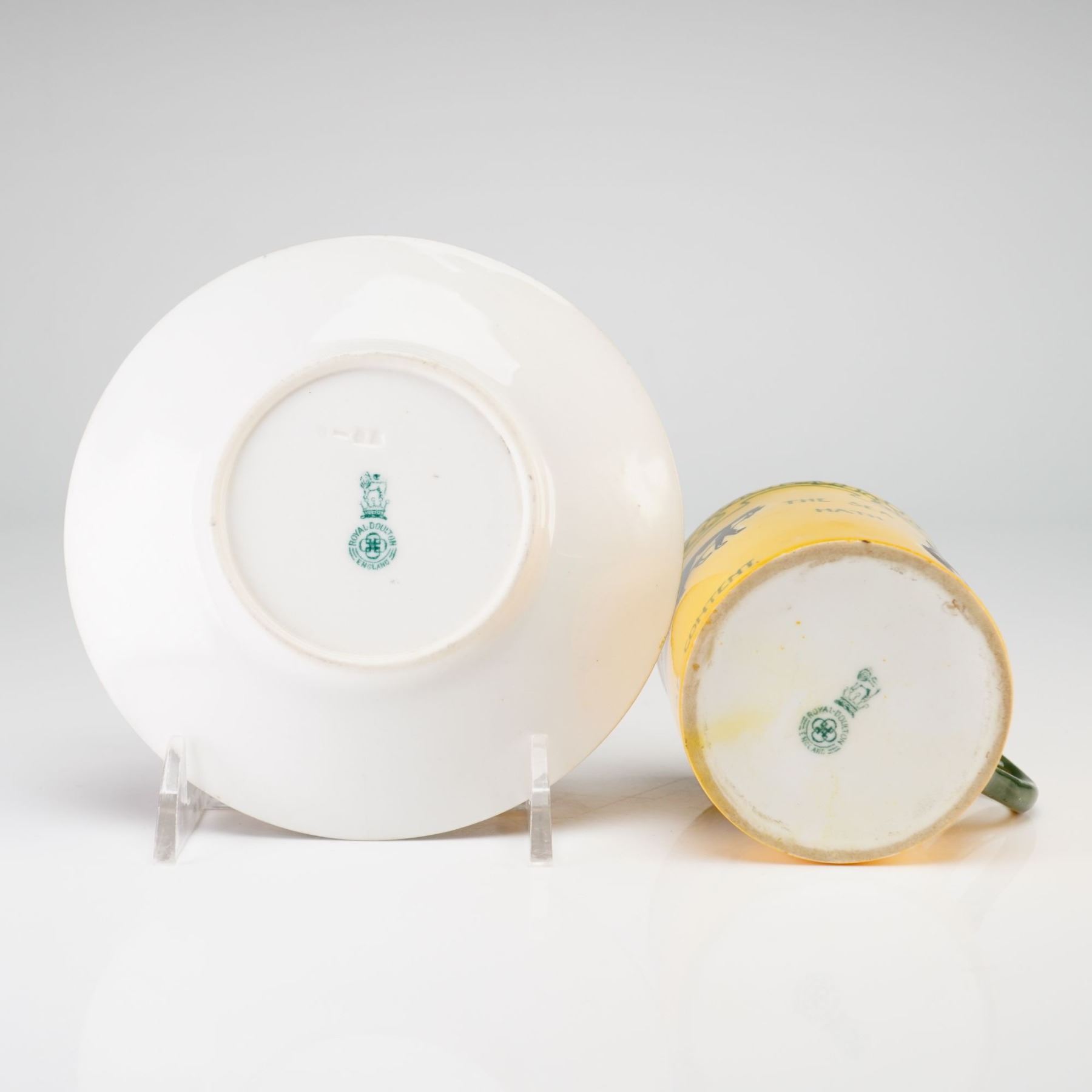 Lot 49 2pc Royal Doulton by David Henry Souter Kateroo Series Ware Cup and Saucer, Be Content the Sea Hath