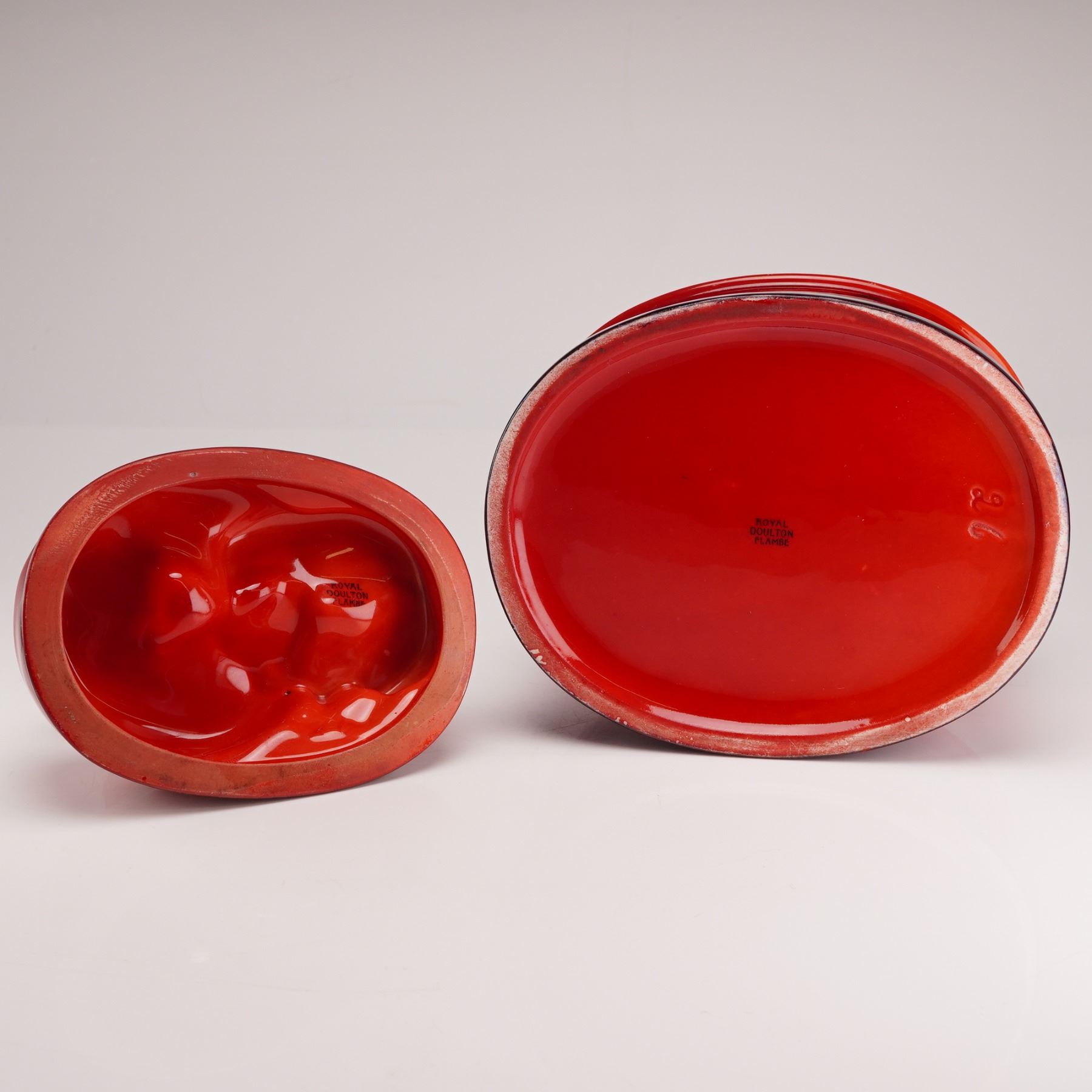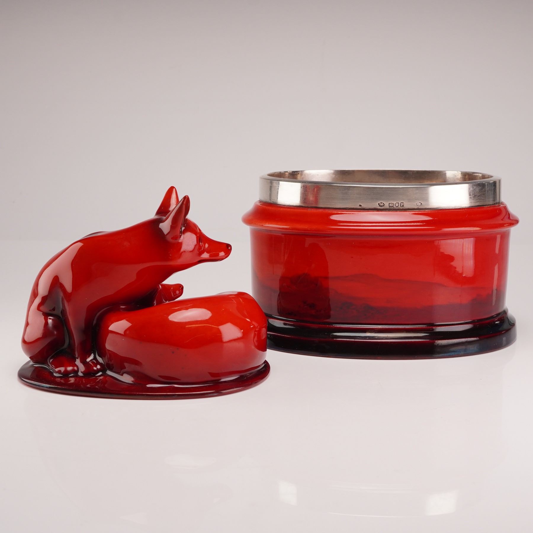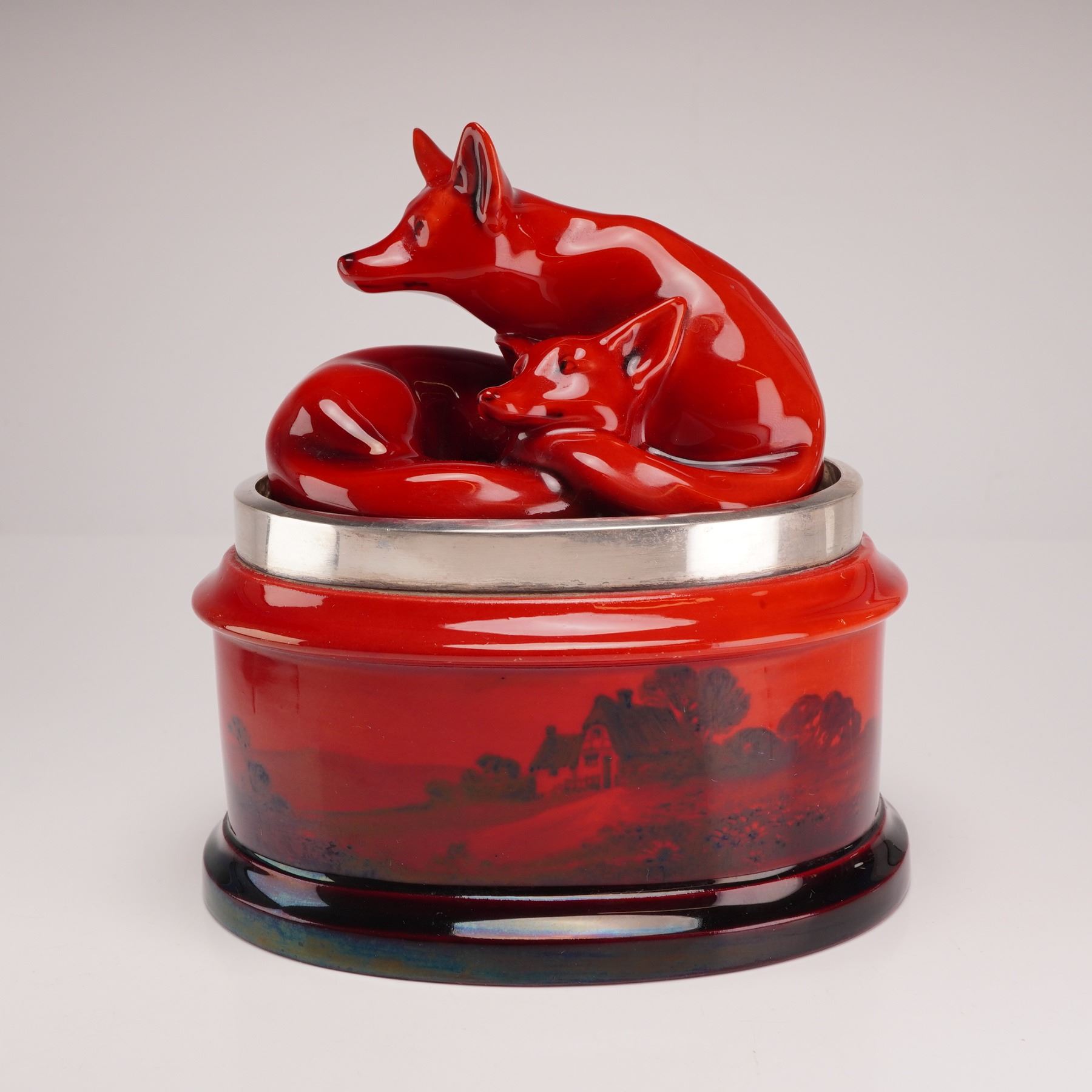 Lot 70 Royal Doulton Flambe Lidded Tobacco Jar with Sterling Silver Rim, Curled Foxes
