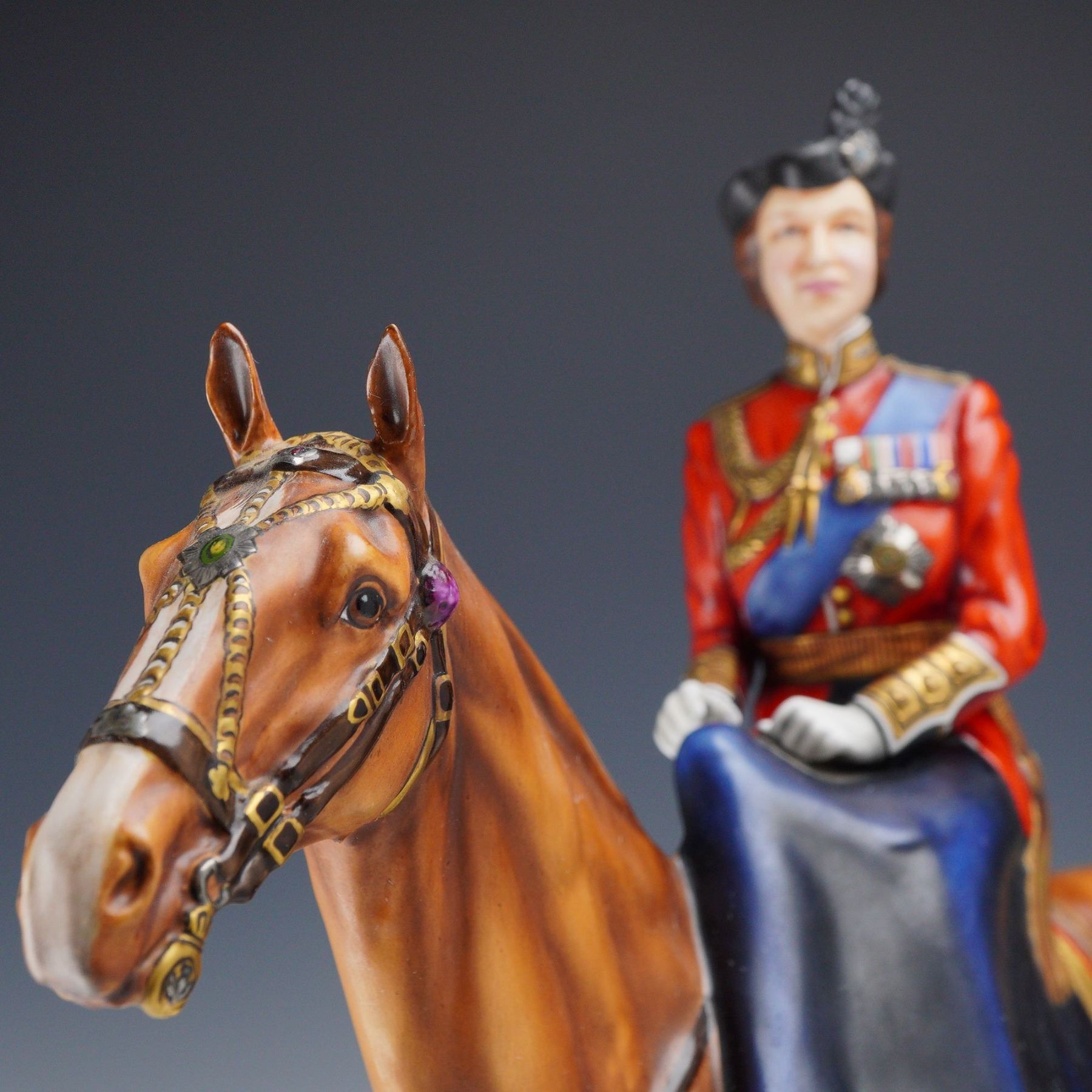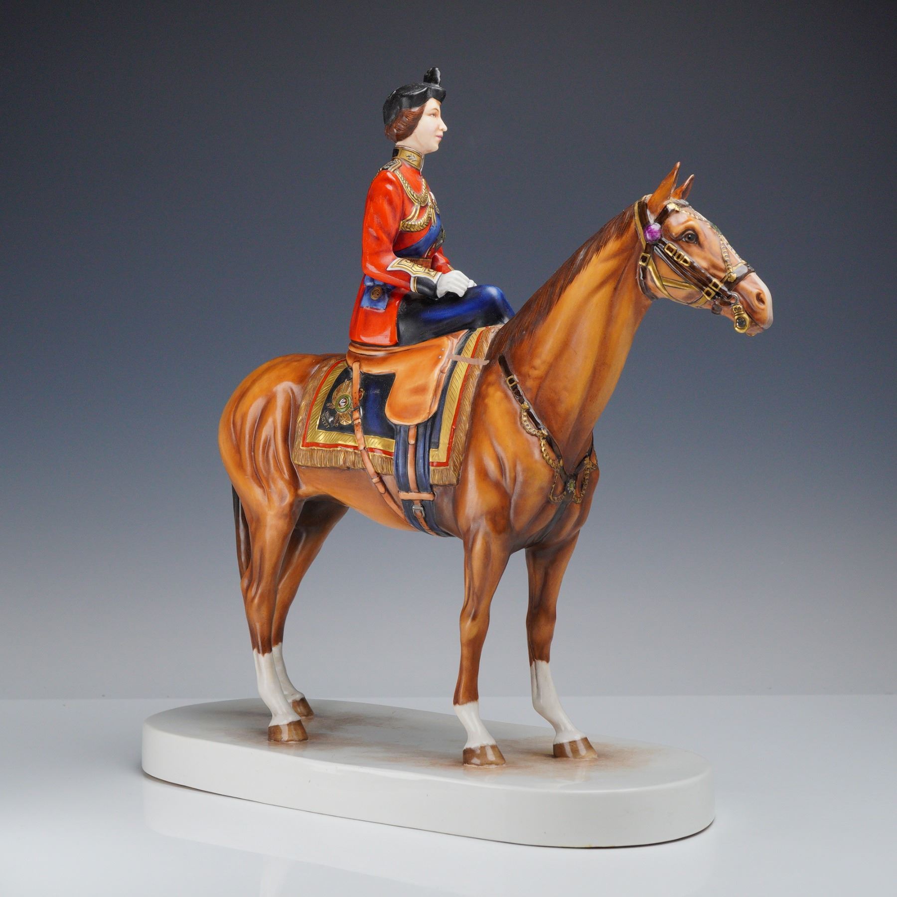 Lot 146 Michael Sutty Porcelain Hand-Painted Figure, Queen Elizabeth II on Horse 1977 Silver Jubilee