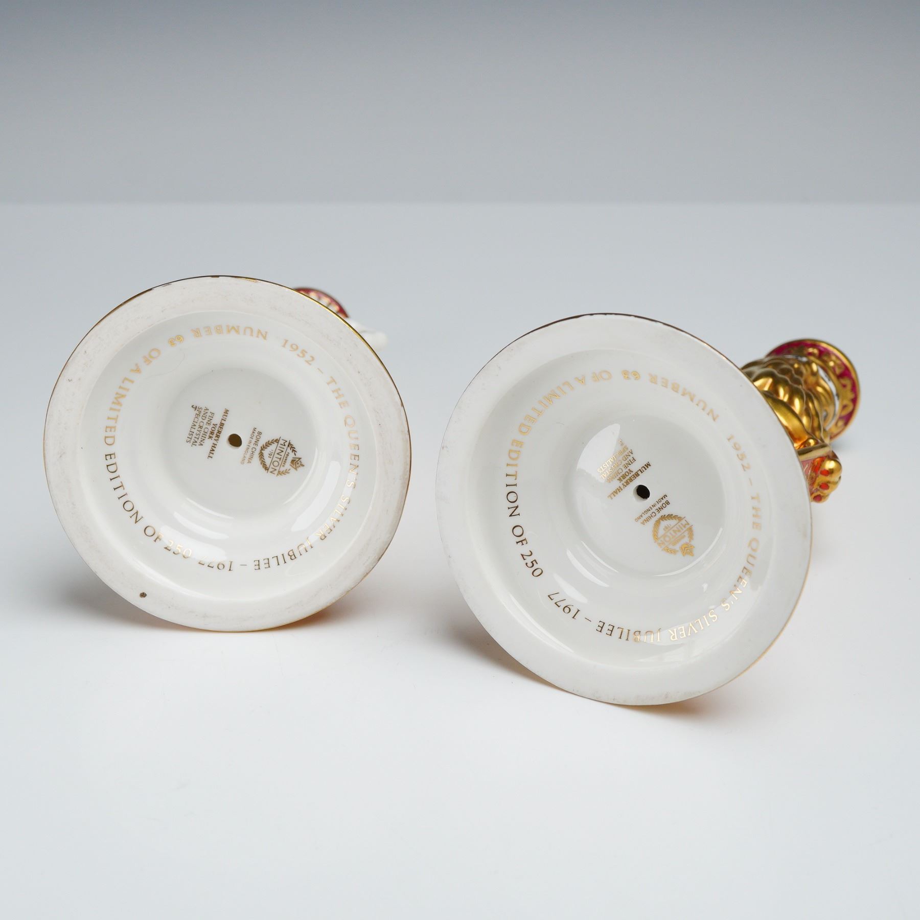Lot 147 Two Minton Bone China Limited Edition The Queen's Silver Jubilee Candlestick Holders