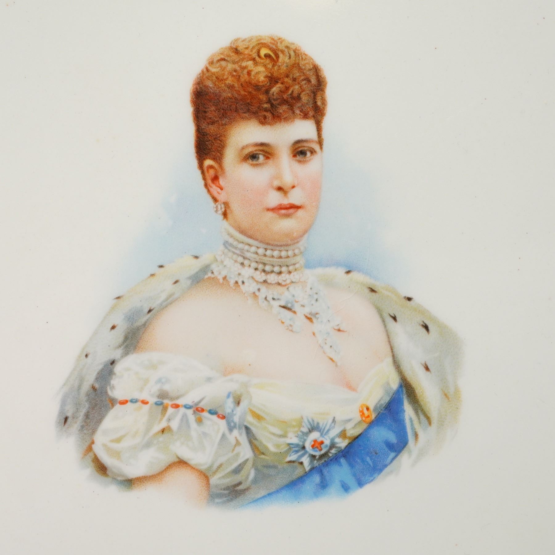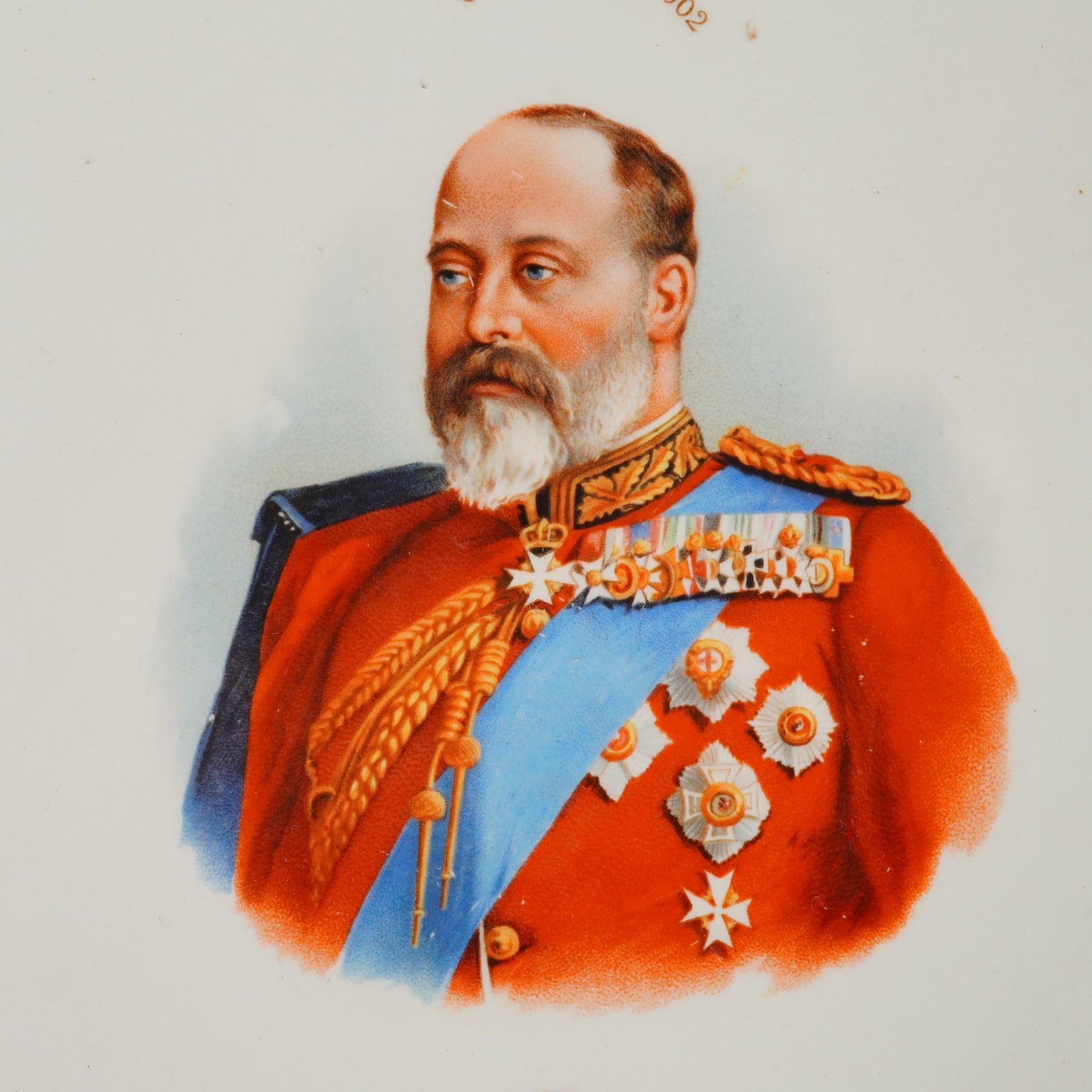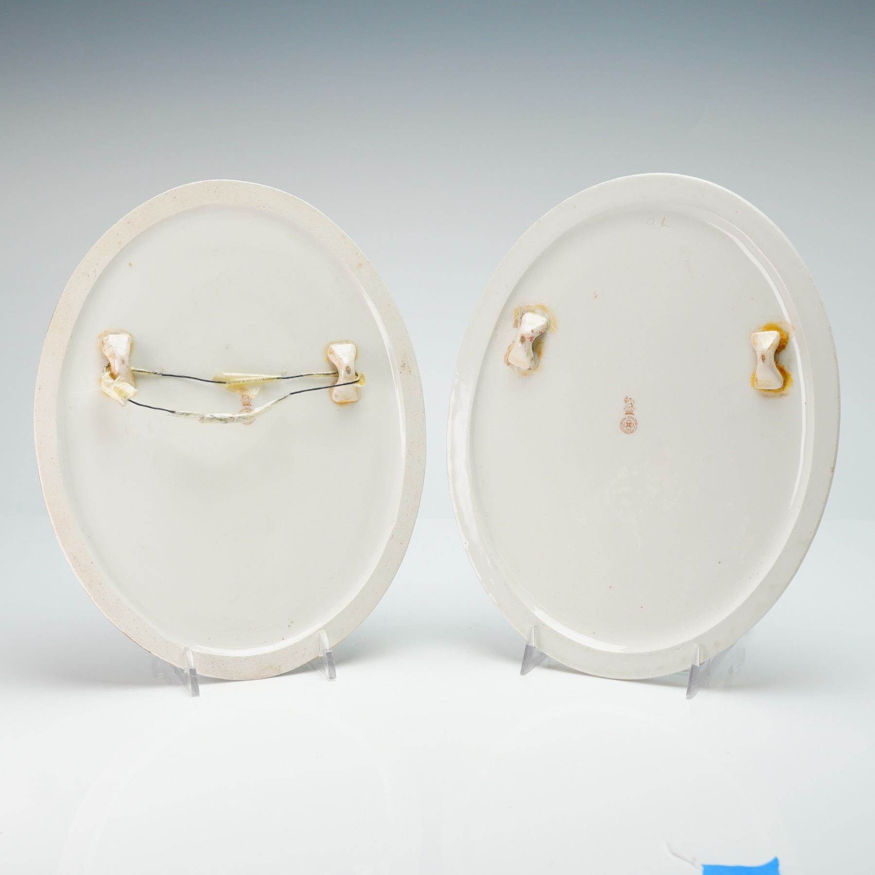 Pair King Edward VII and Queen Alexandra Coronation 1902 commemorative oval portrait plaques, with gold gilt border. Royal Doulton backstamp.