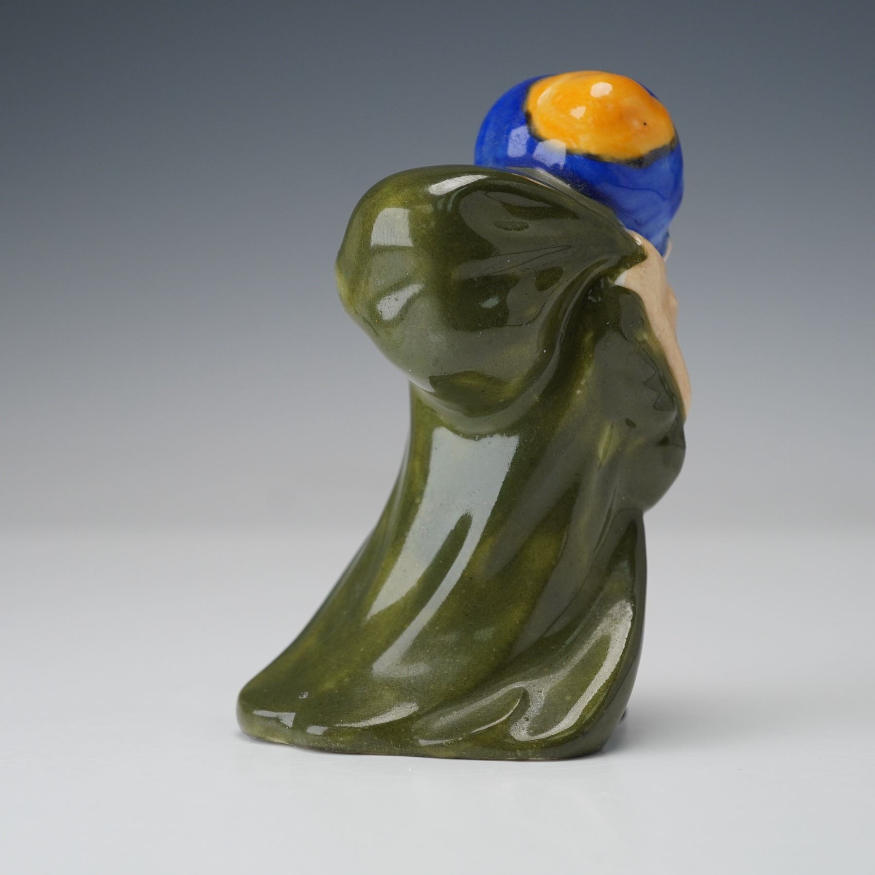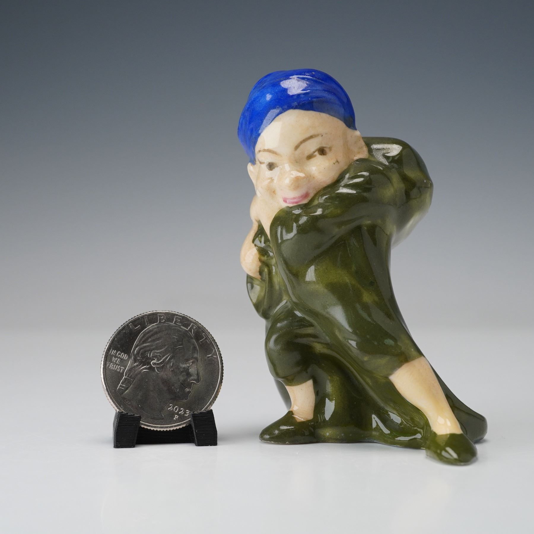 Style seven, hand painted porcelain figure designed in green and blue coloration carrying a sack over shoulder. Doulton backstamp.