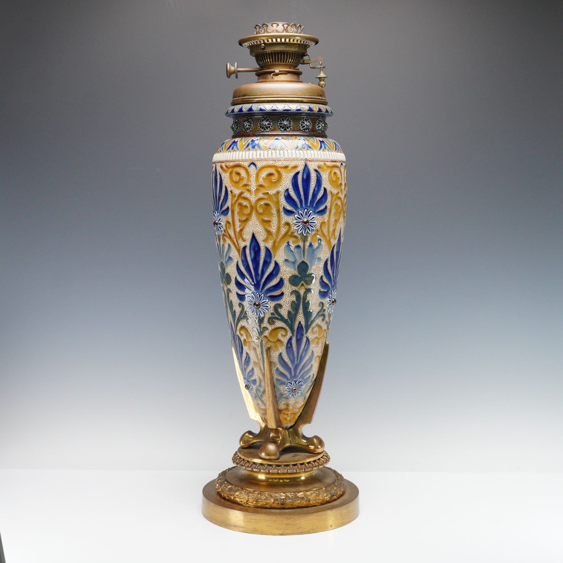 Lot 227 Doulton Lambeth by Edith Lupton Stoneware Oil Lamp