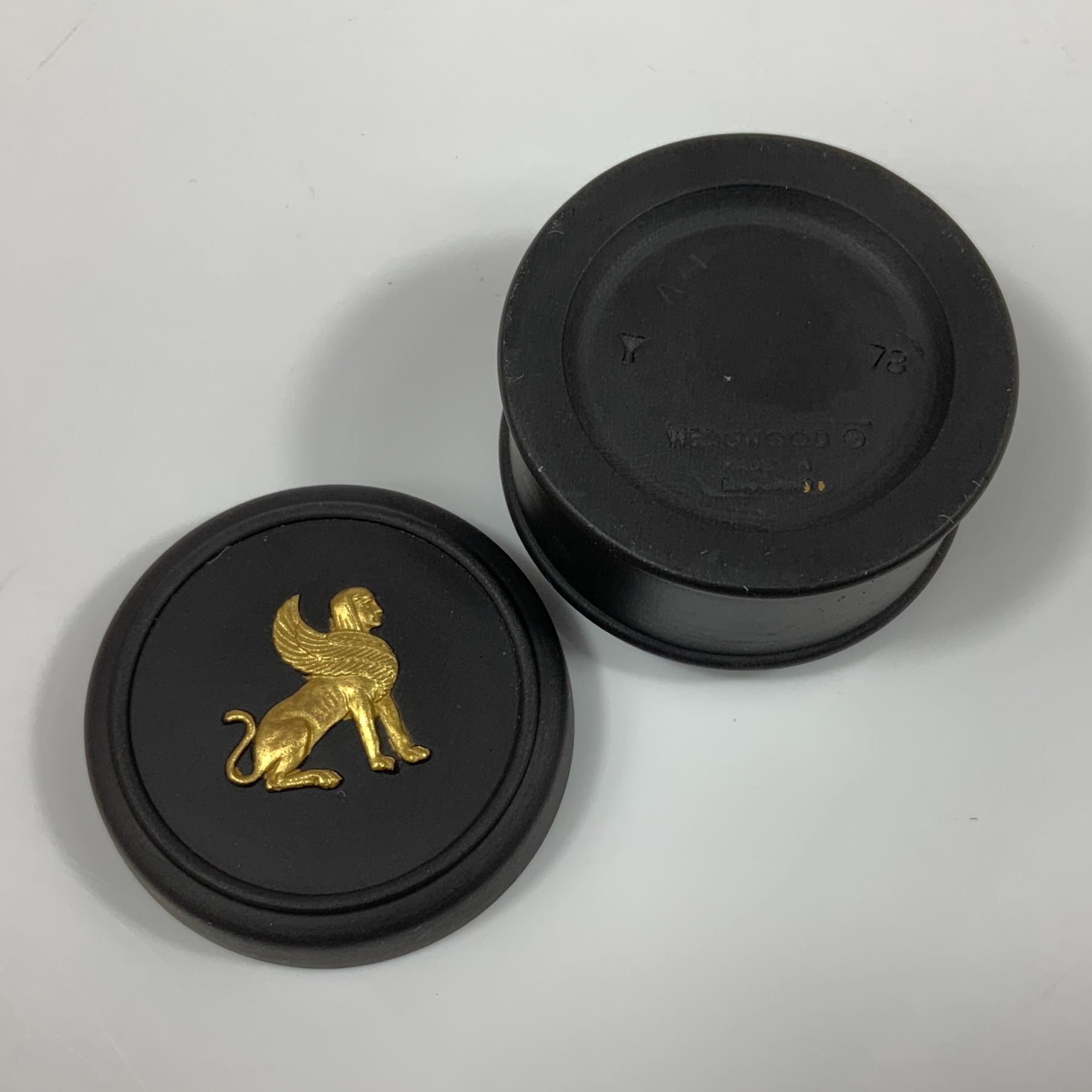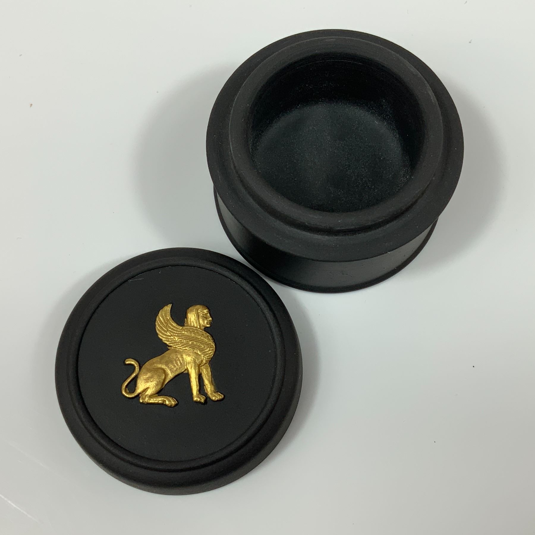 Lot 238 Wedgwood Gilded Black Basalt Egyptian Sphinx Miniature Round Trinket Box