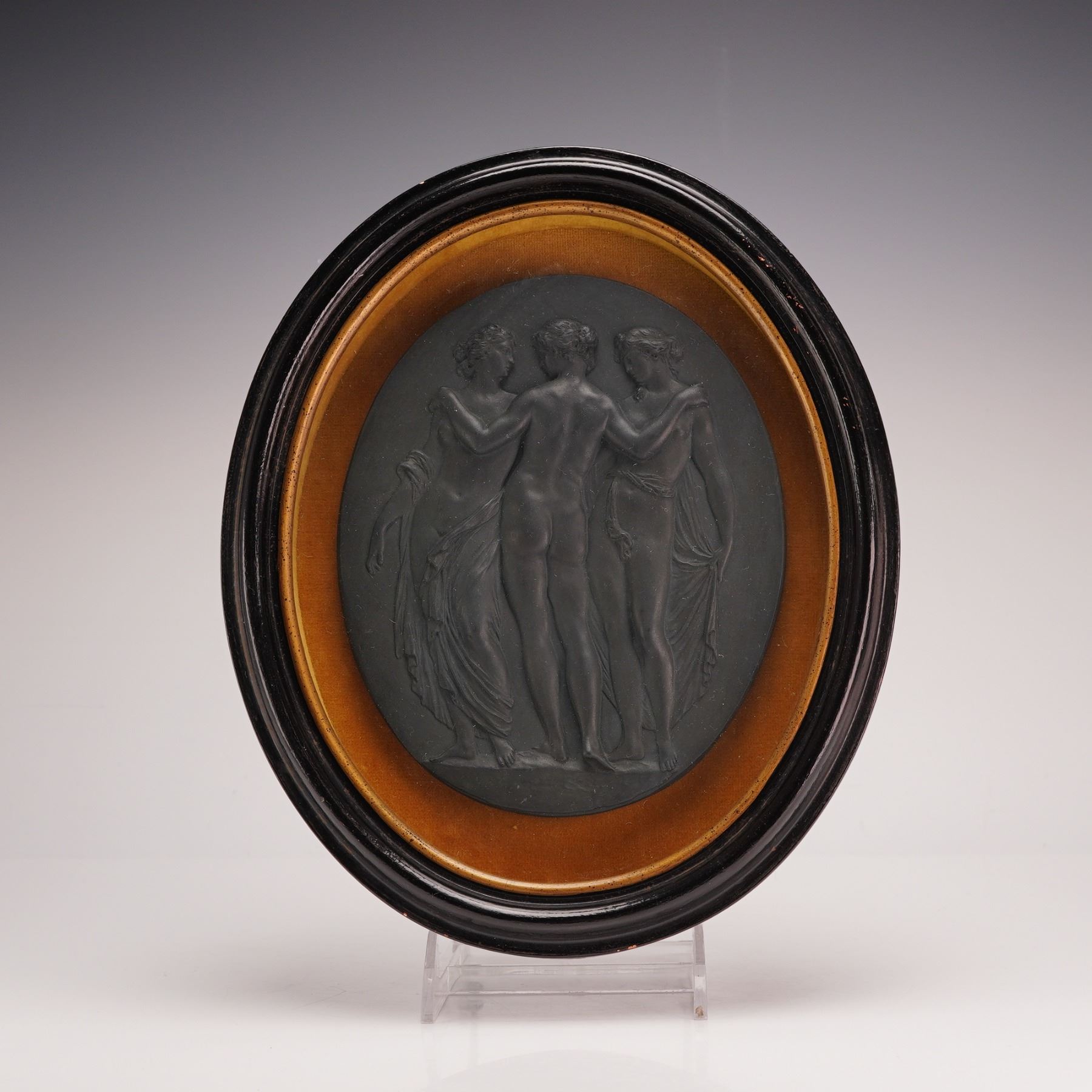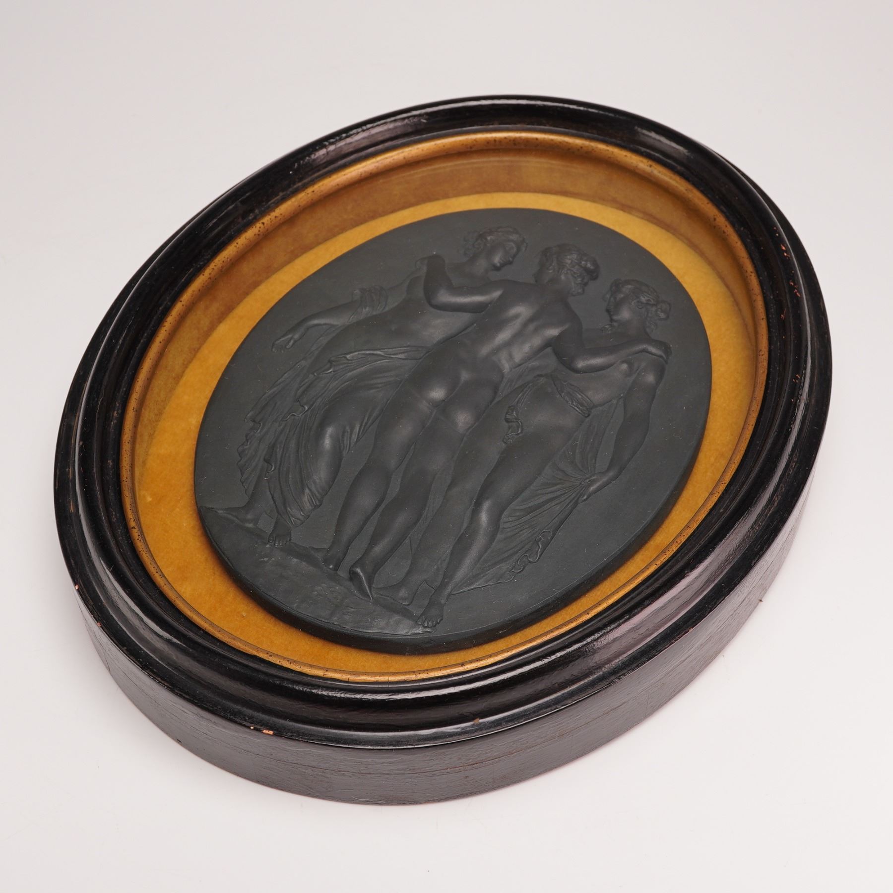 Lot 239 Wedgwood Black Basalt Porcelain Oval Plaque, Three Graces, Framed