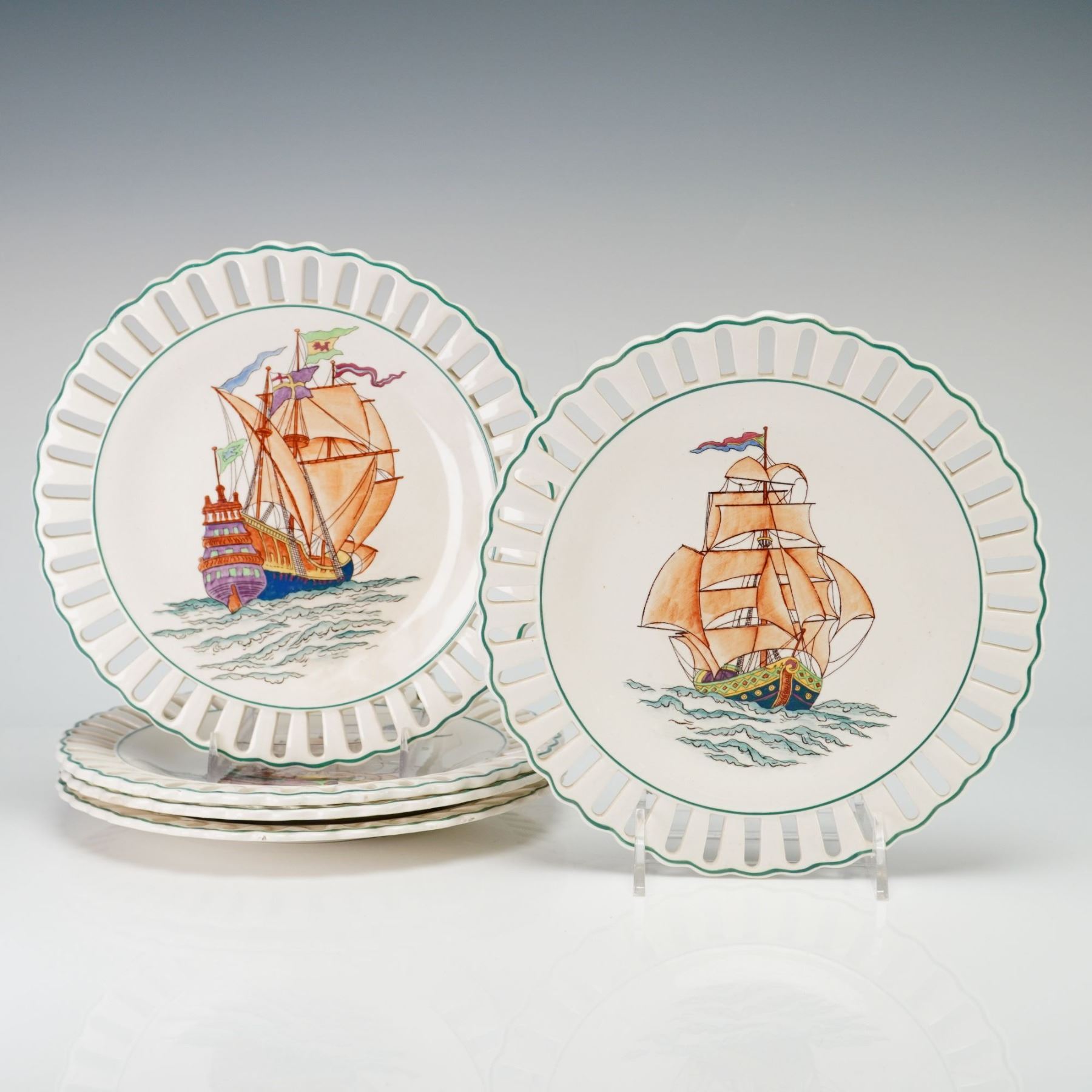 Lot 268 Set of Five Wedgwood Etruria Pierced Maritime Ship Plates from The Rubin Collection