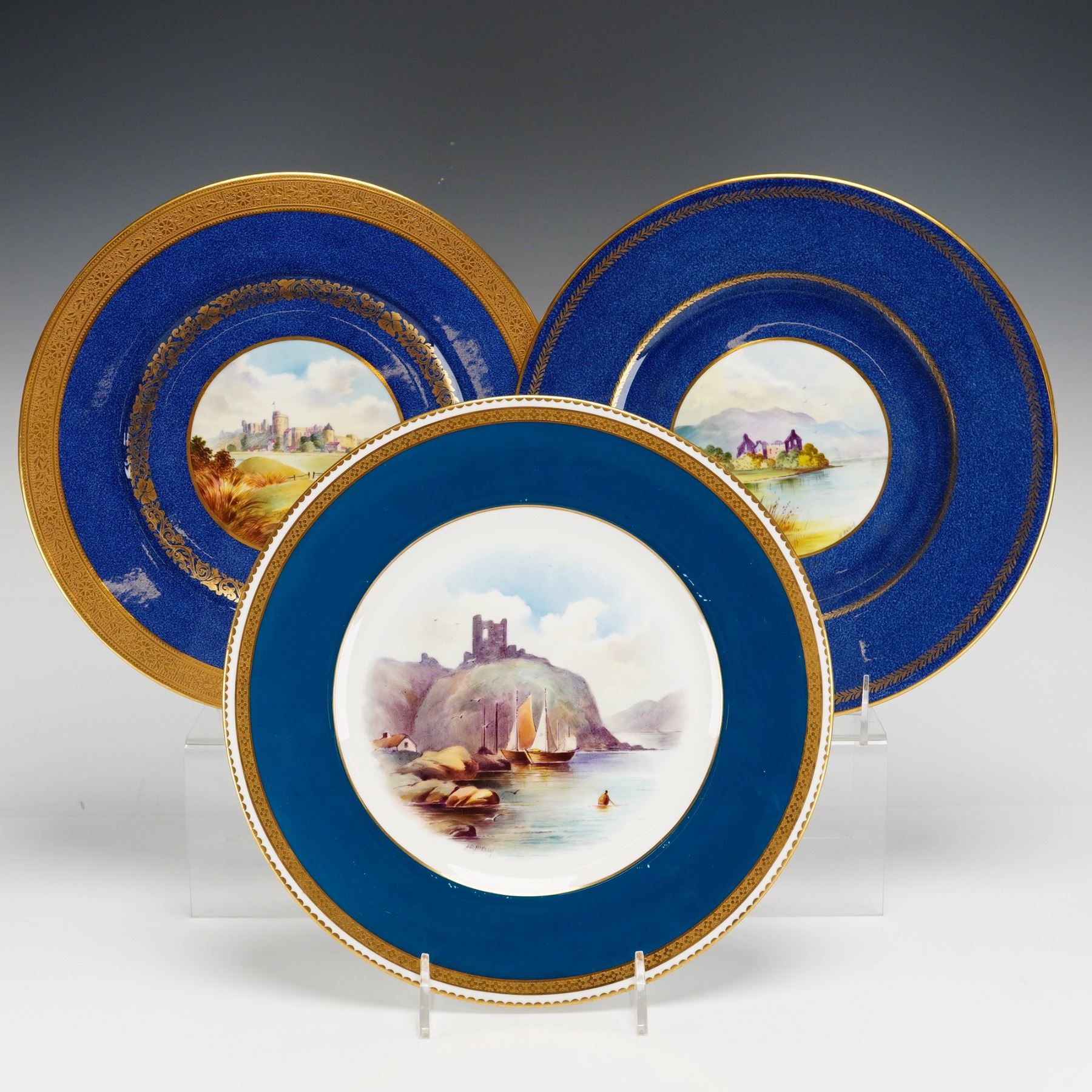 Lot 278 3pc Wedgwood Hand-Painted Porcelain Landscape Cabinet Plates