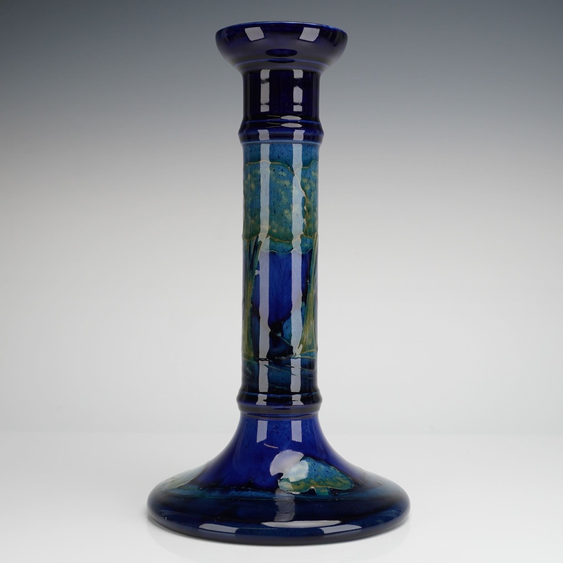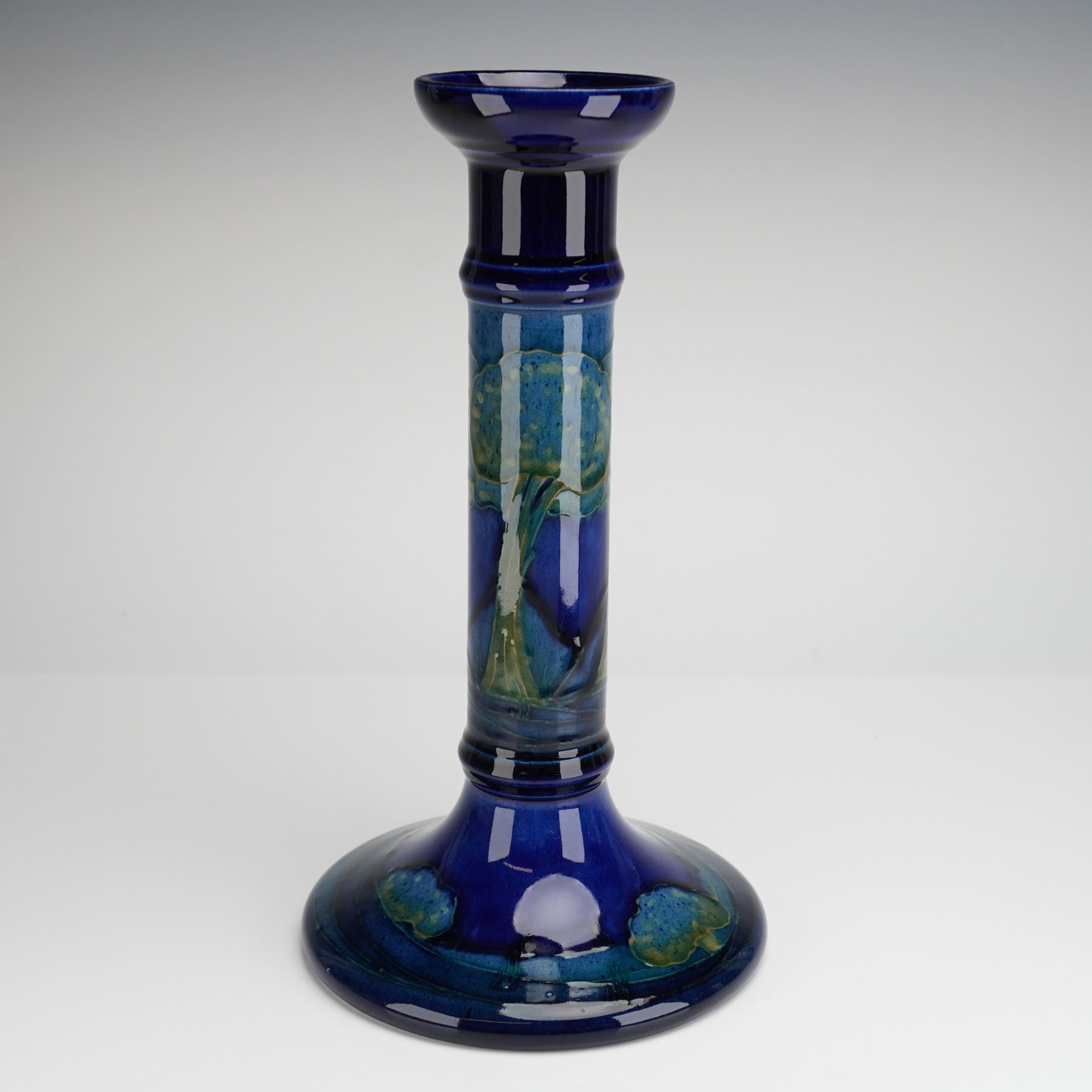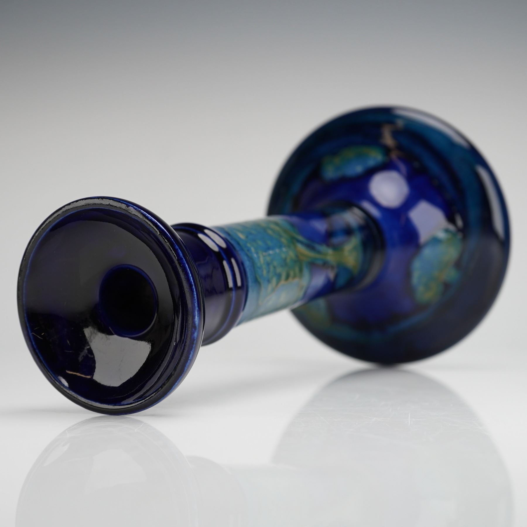 Lot 285 William Moorcroft Pottery Candlestick, Moonlit Blue