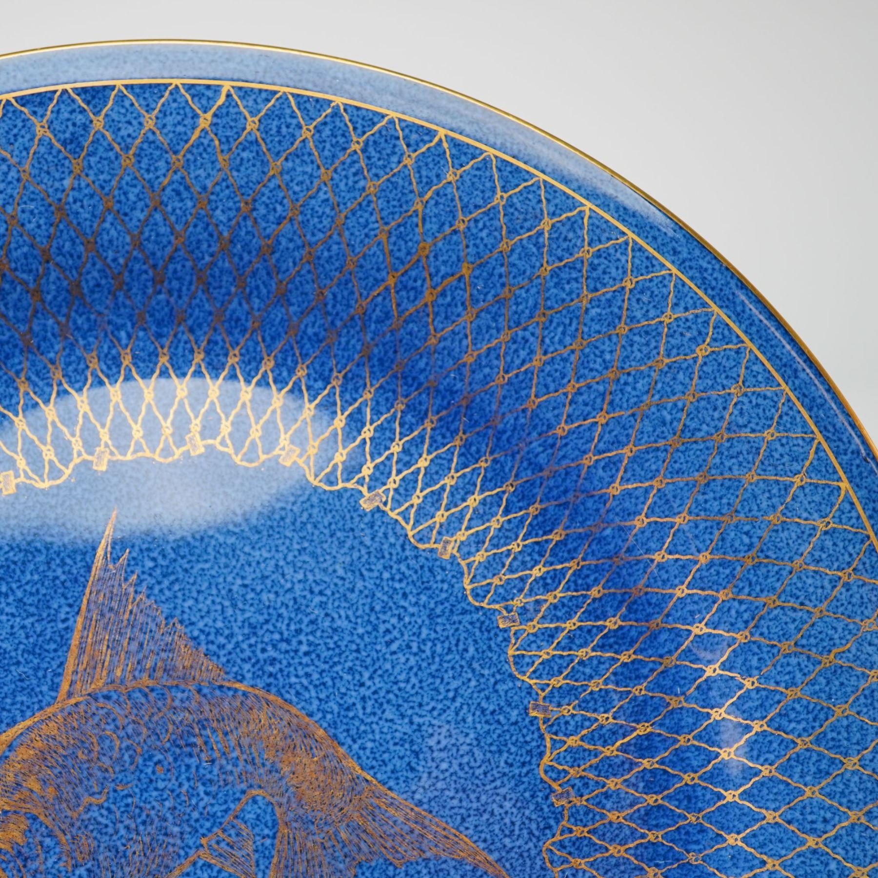 Lot 321 Wedgwood Fairyland Lustre, Cobalt Blue and Gilded Fish Motif Plate from the Rubin Collection