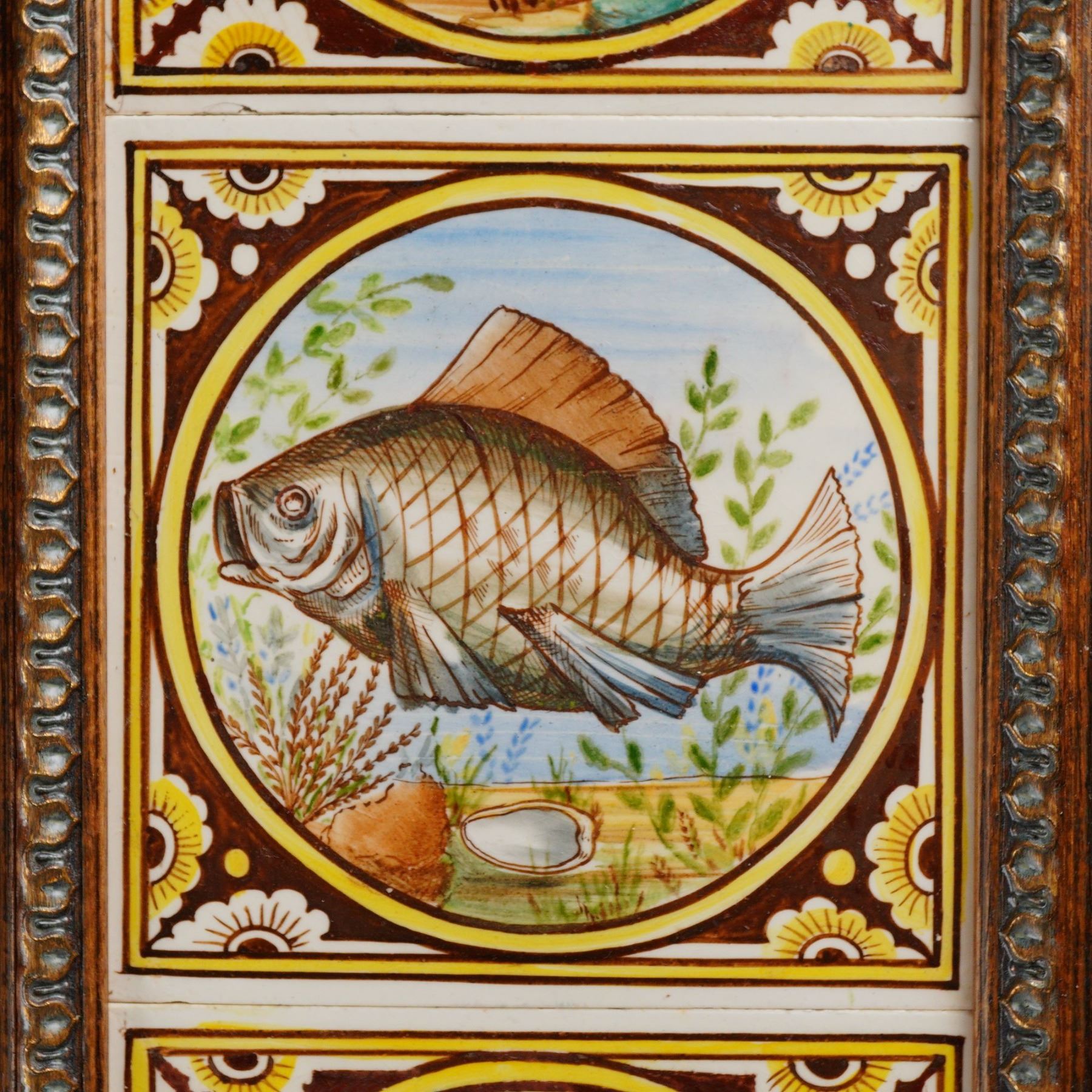 Lot 342 Victorian Aesthetic Movement Ceramic Fish Tiles Framed, Attributed to Minton Hollins & Co.