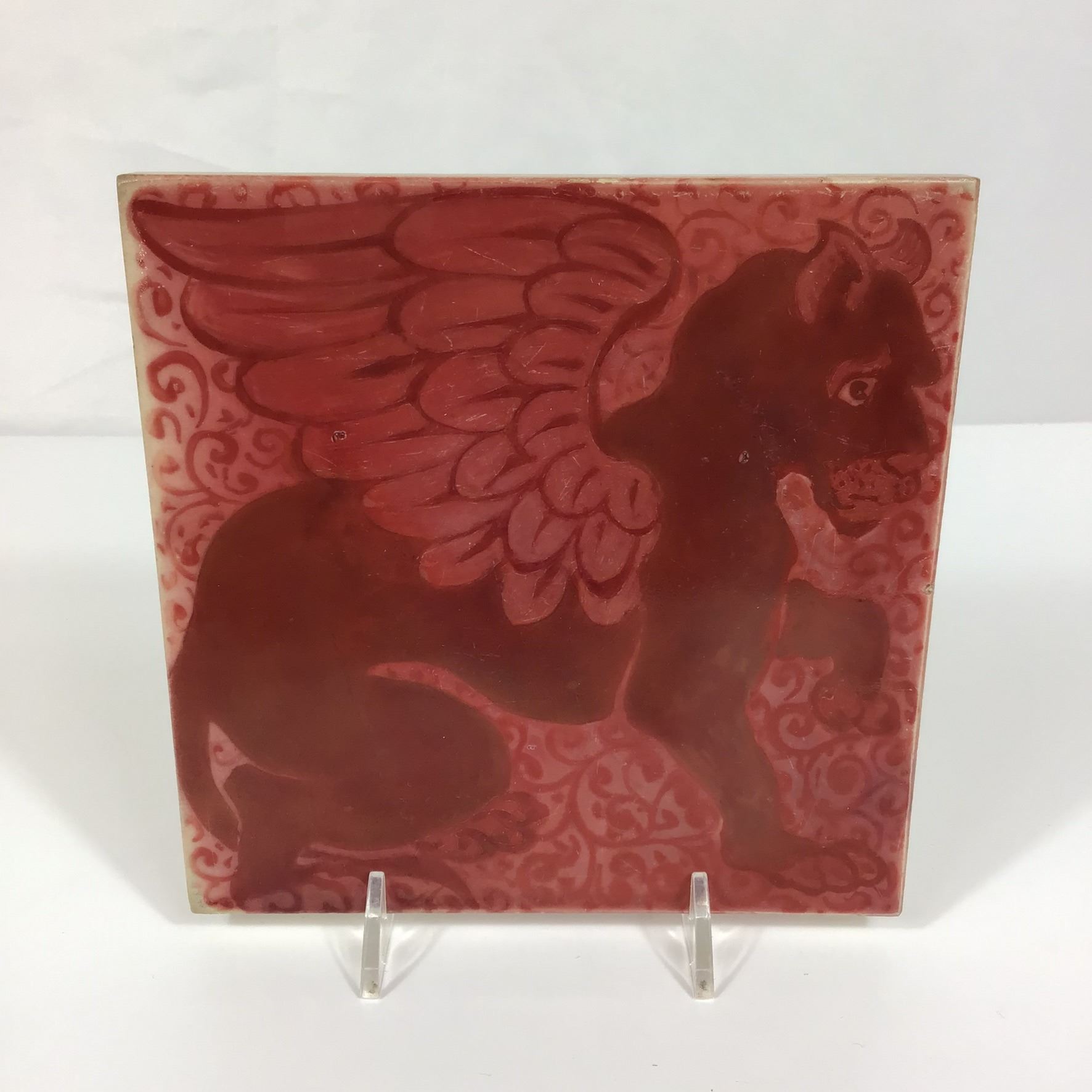 Lot 360 William De Morgan Red Luster Winged Lion Tile