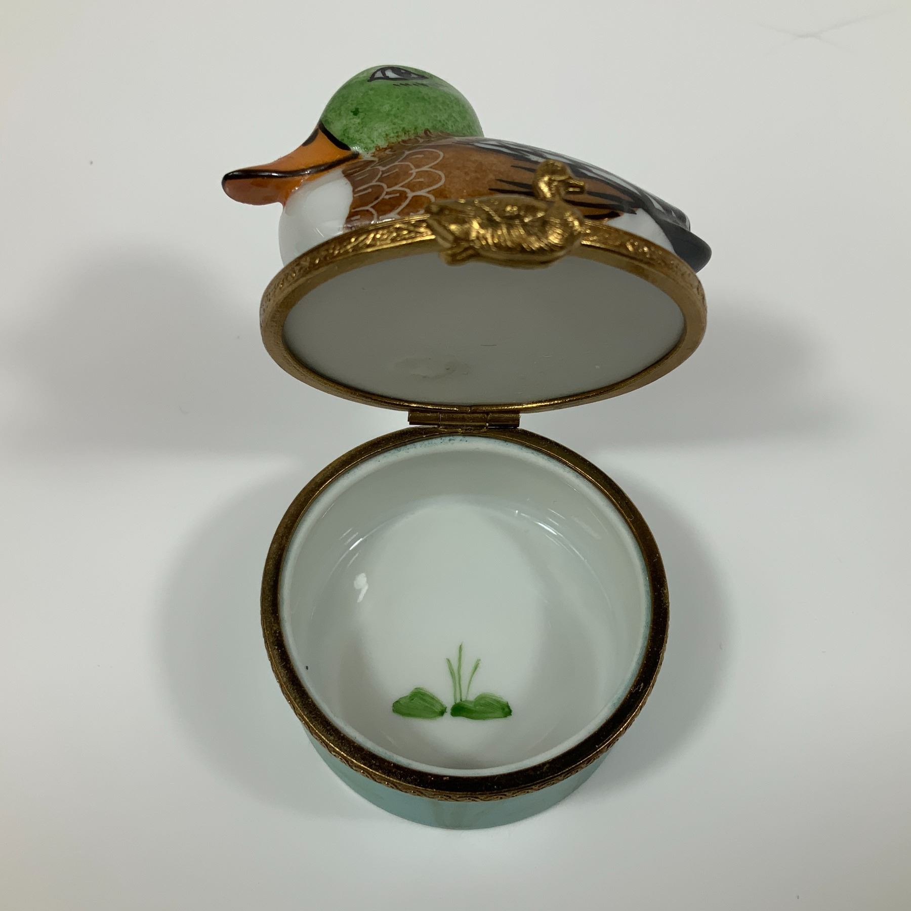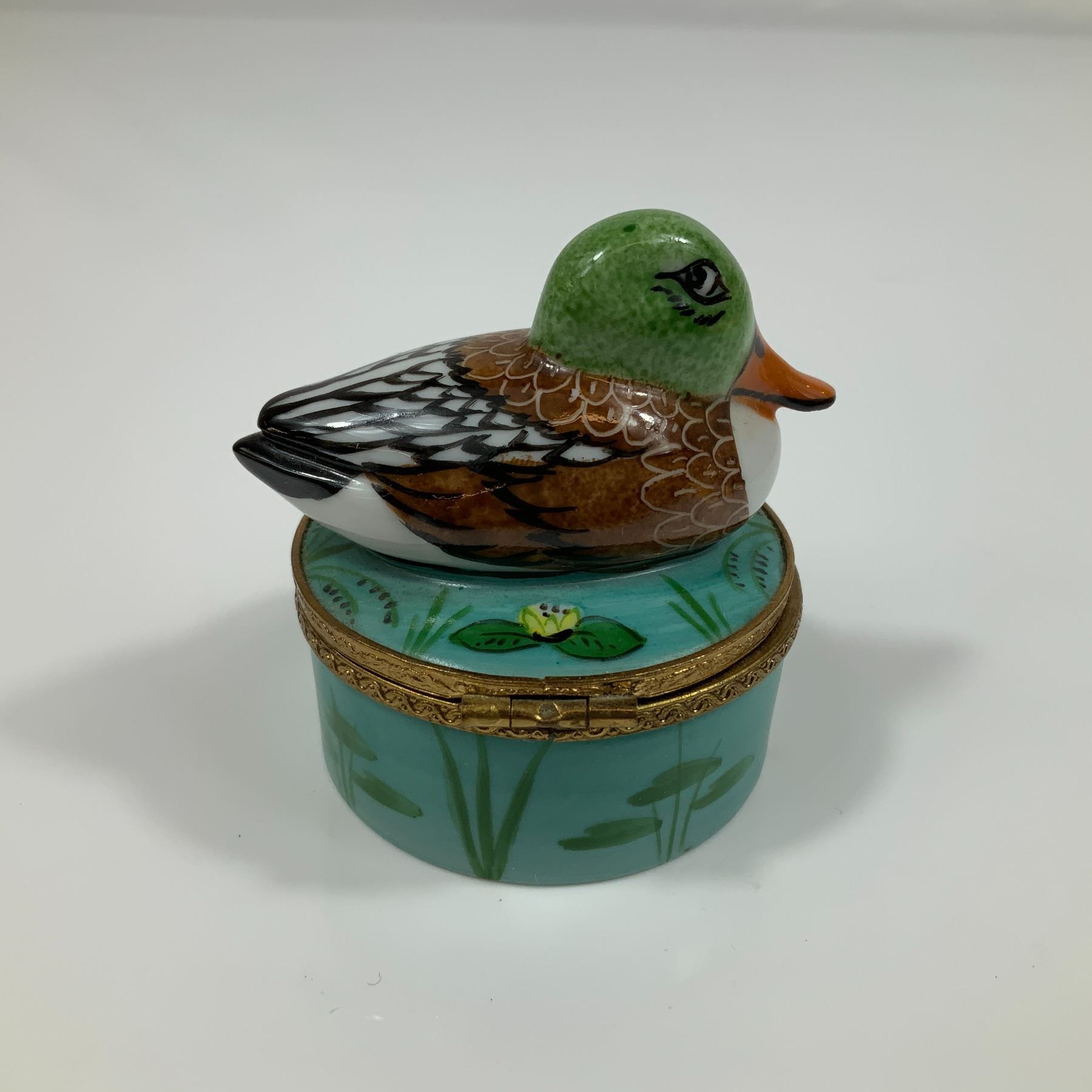 Lot 366 Limoges Hand Painted Porcelain Trinket Box, Mallard Duck