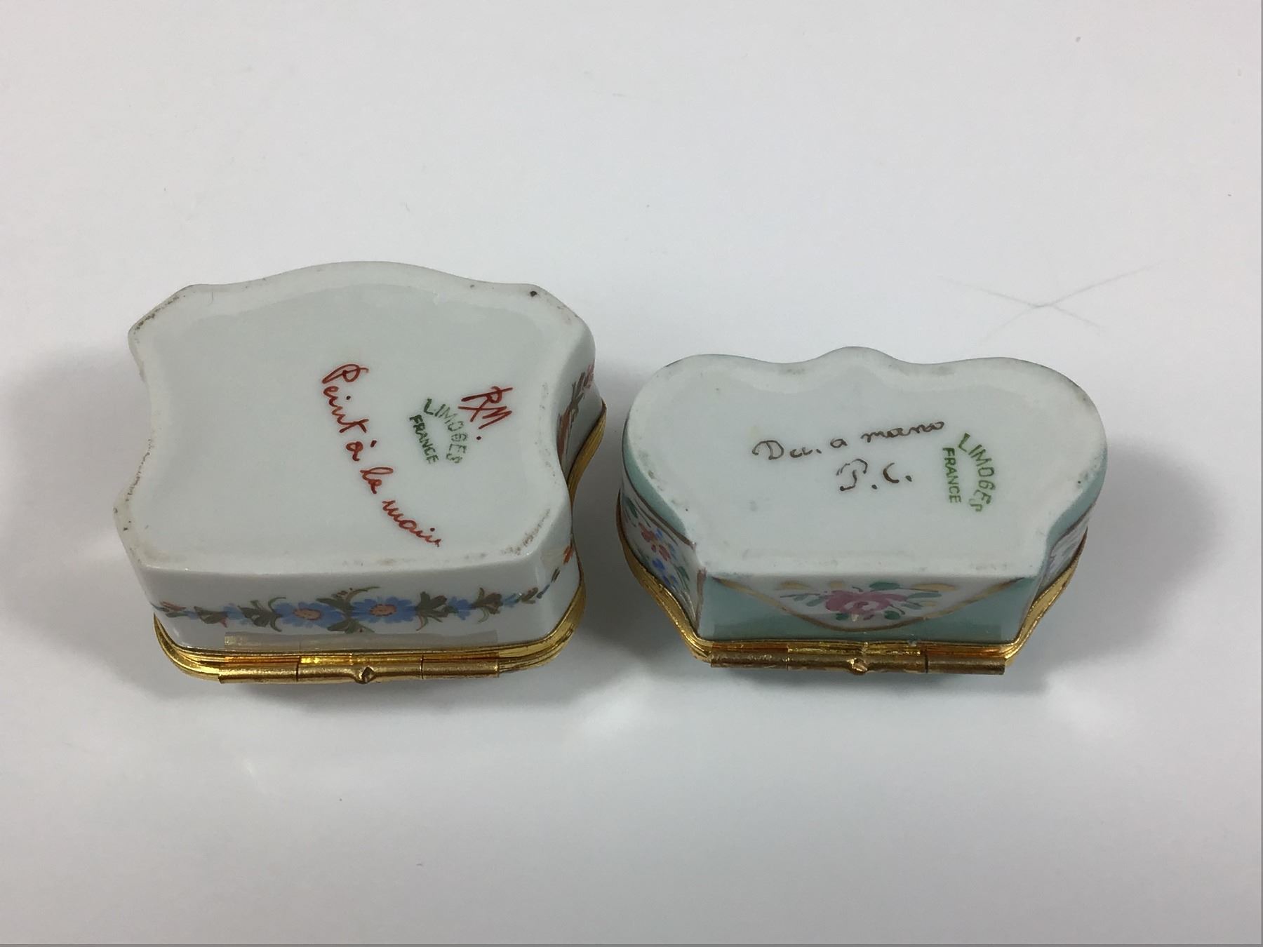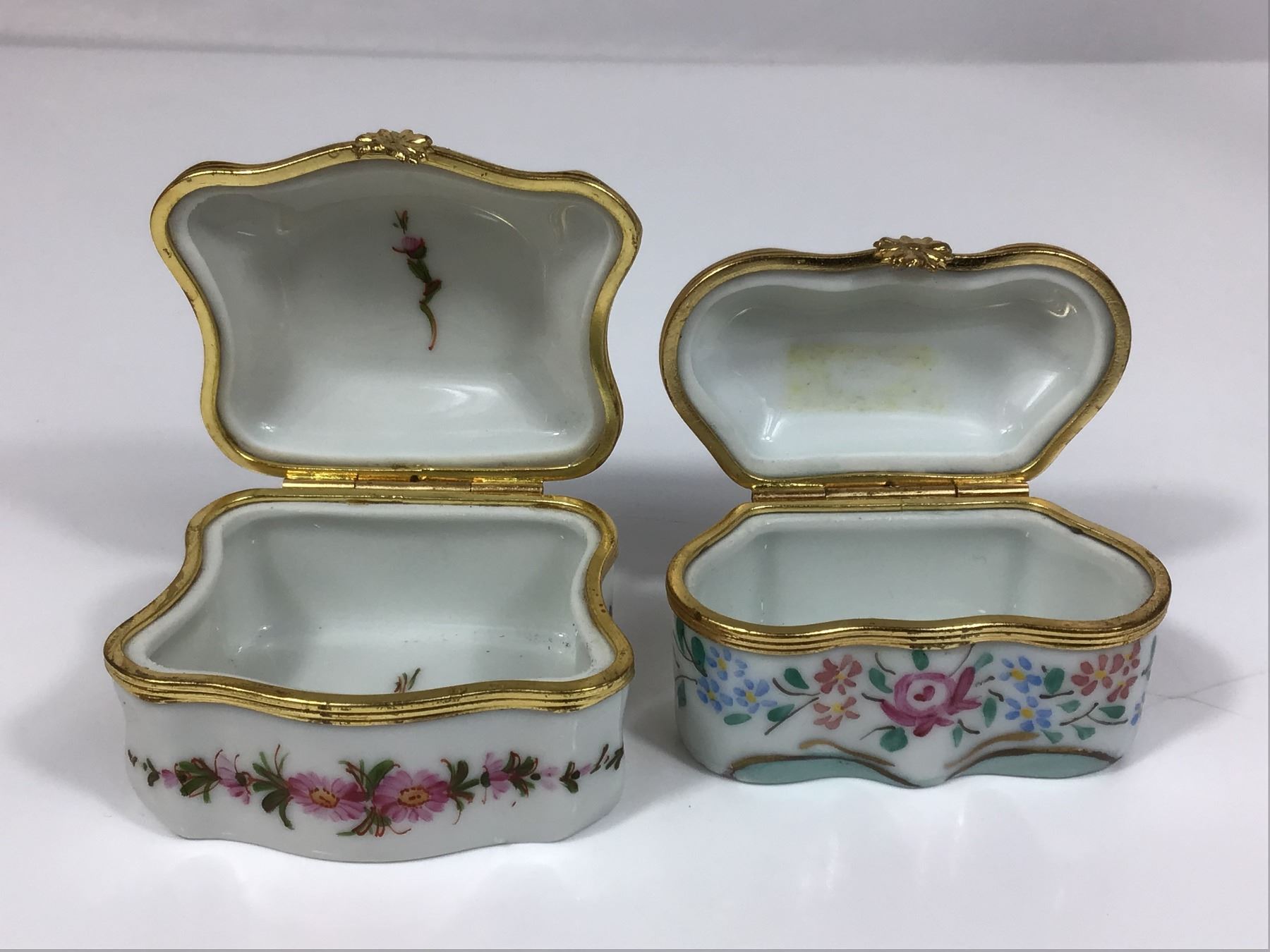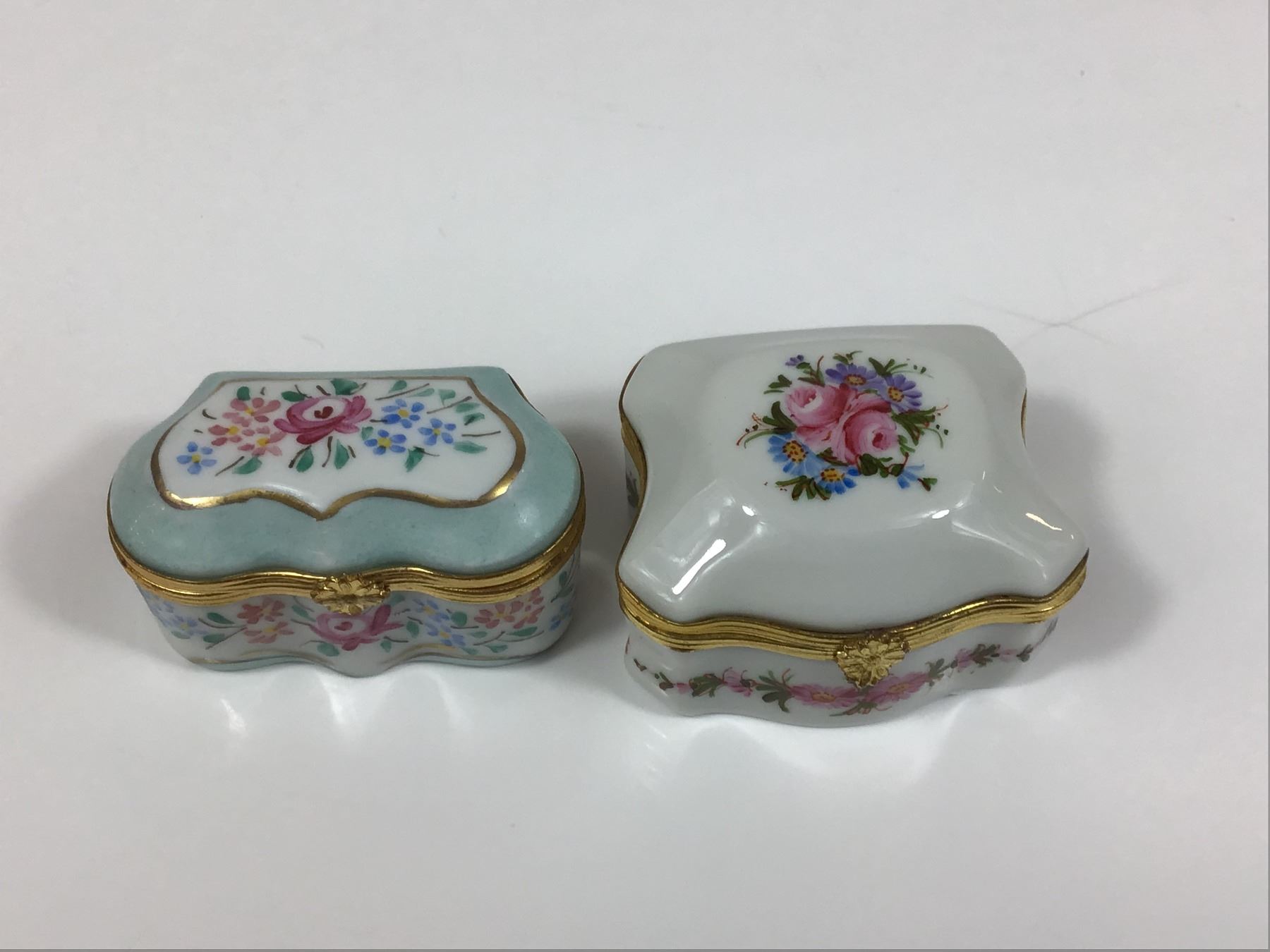 Lot 368 Pair of Limoges Hand-Painted Porcelain Trinket Boxes with Pink Floral Graphics