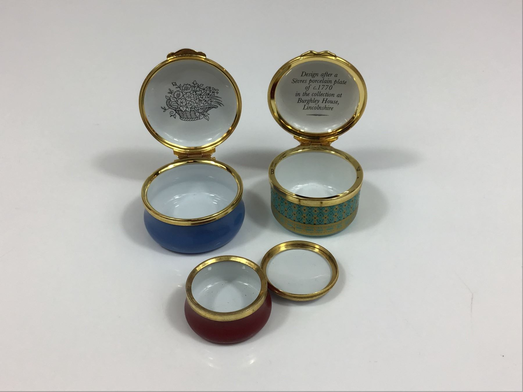 Lot 373 Three Halcyon Days and Crummles Enameled Floral Themed Trinket Boxes