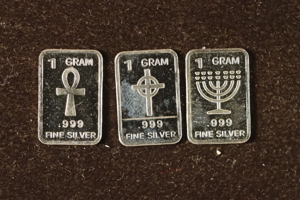 #2 Lot 2 3-1 GRAM .999 FINE SILVER INGOTS: CROSS, JEWISH