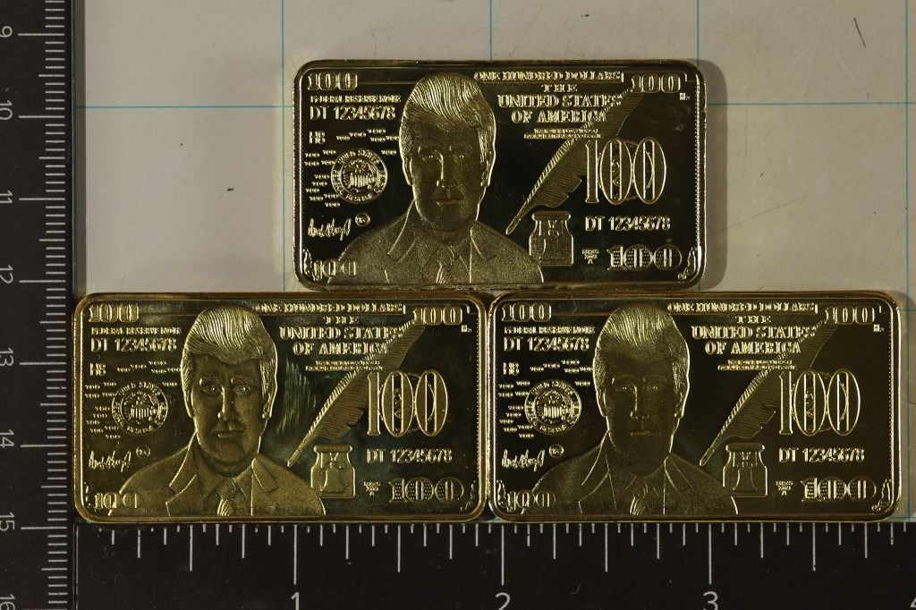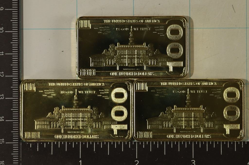 #6 Lot 6 3-24KT GOLD PLATED 1 OZ. REPLICA $100 UNITED STATE