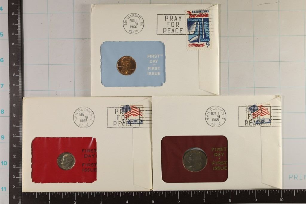 #9 Lot 9 3-US COIN UNC FDC'S: 1966 LINCOLN CENT, 1965