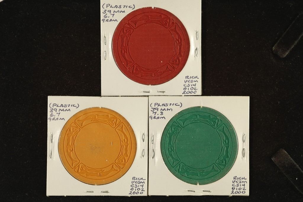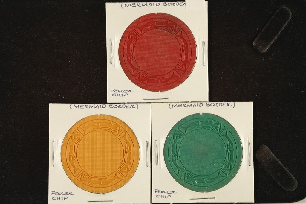 #14 Lot 14 3-PLASTIC POKER CHIPS WITH MERMAID BORDER