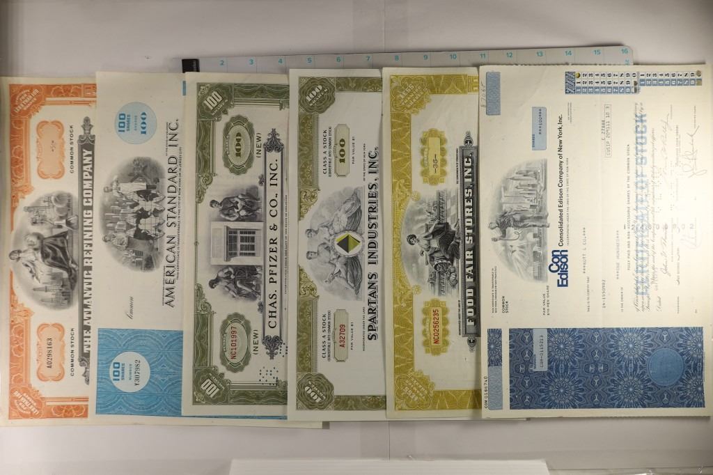 REFINING COMPANY 1967, (50 SHARES), AMERICAN STANDARD INC. (100 SHARES), CHAS. PFIZER & CO. INC 1956 (100 SHARES), 1967 SPARTANS INDUSTRIES, INC (100 SHARES), 1965 FOOD FAIR STORES, INC (36 SHARES) AND 1973 CON EDISON