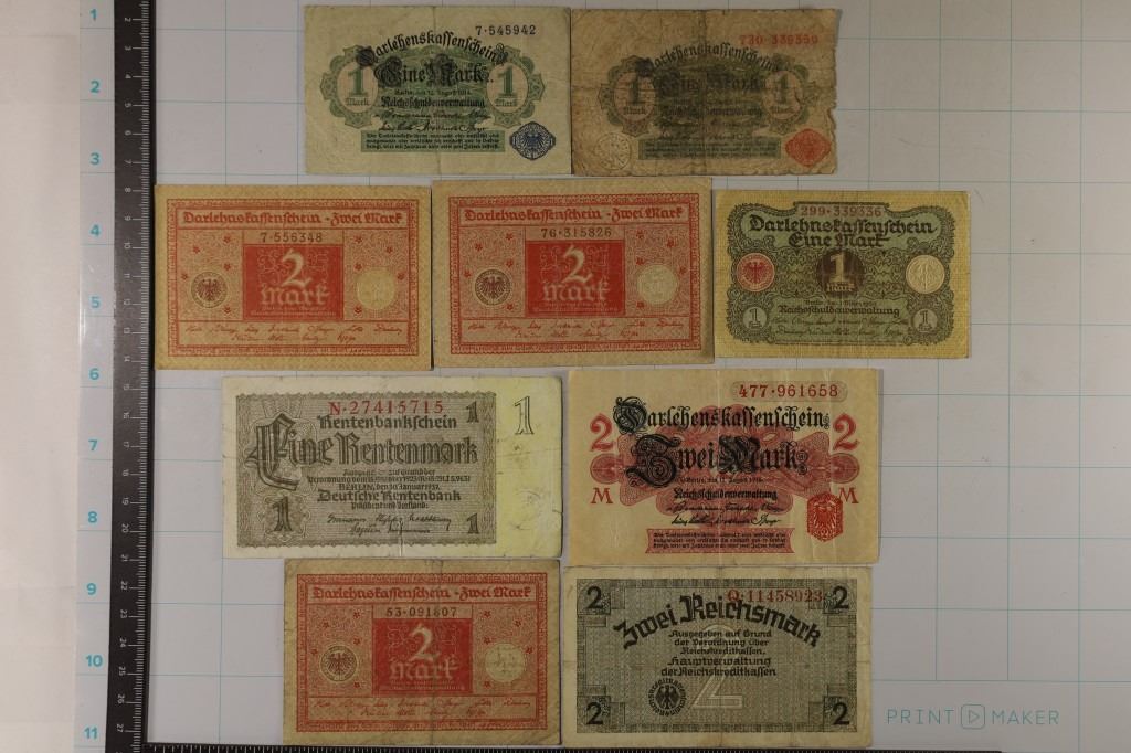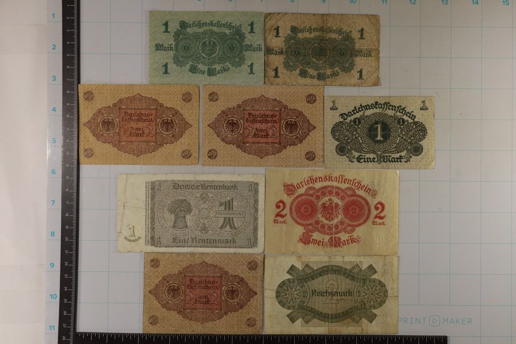 #30 Lot 30 9-GERMAN 1 & 2 MARK BILLS: 1914-1937