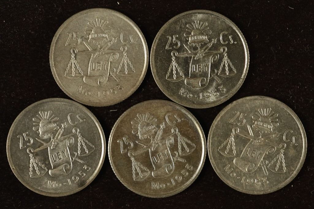 #33 Lot 33 5-1953 MEXICO SILVER 25 CENTAVOS. .1605 OZ. ASW