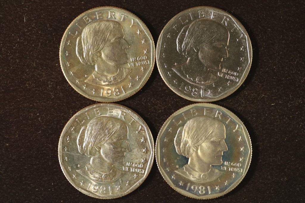 #39 Lot 39 4-SBA DOLLARS ALL 1981-P/D/S WITH PF S ALSO