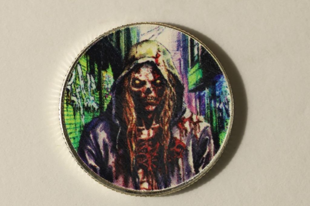 COLORIZED ZOMBIE ON ONE SIDE, IN HARD PLASTIC CAPSULE