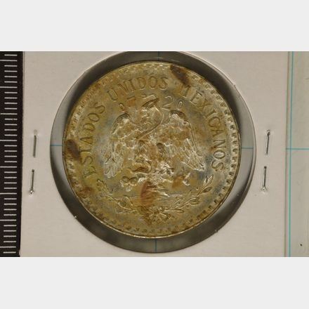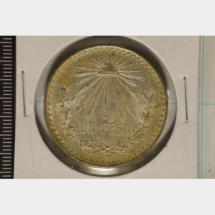 #48 Lot 48 1945-M MEXICO SILVER CAP & RAYS PESO .3857 OZ. ASW