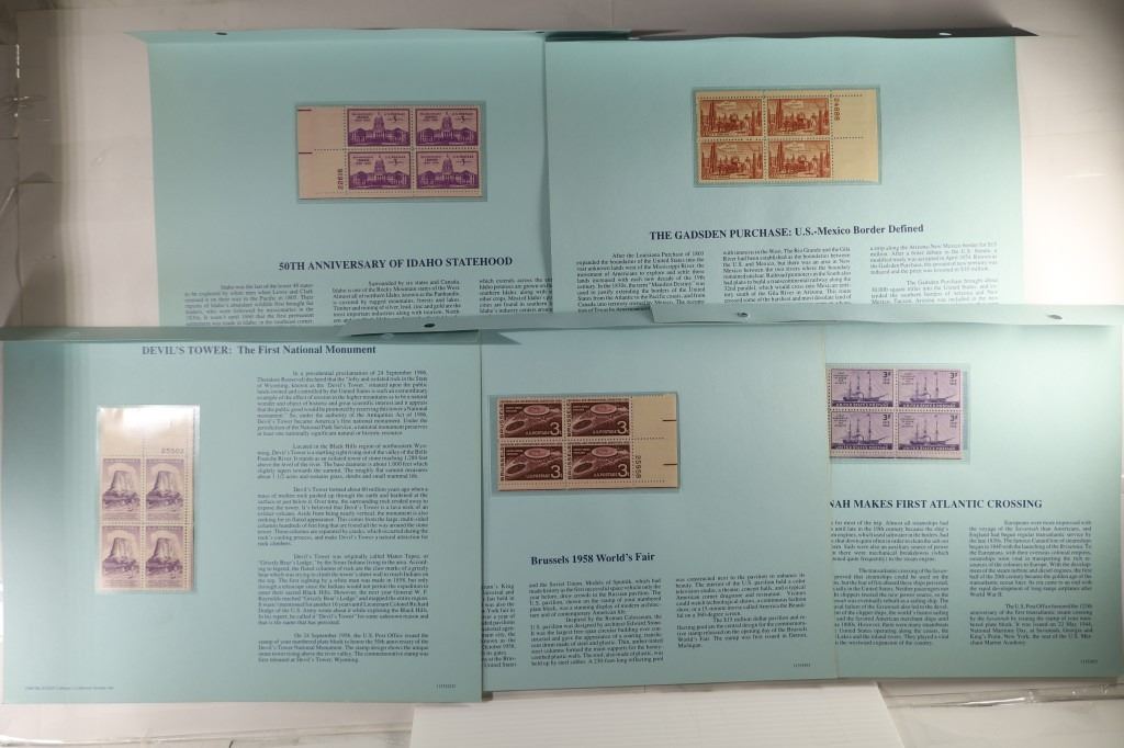 ATLANTIC CROSSING, BRUSSELS 1958 WORLD'S FAIR, DEVILS TOWER THE 1ST NATIONAL MONUMENT, THE GADSDEN PURCHASE THE EUS MEXICO BORDER DEFINED AND 50TH ANNIVERSARY OF IDAHO STATEHOOD. ALL WITH INFO SHEETS