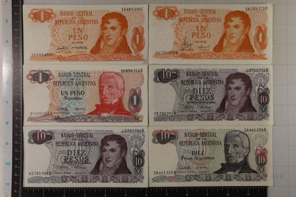 #60 Lot 60 6-ARGENTINA CRISP UNC BILLS: 3-1 PESO AND 3-10
