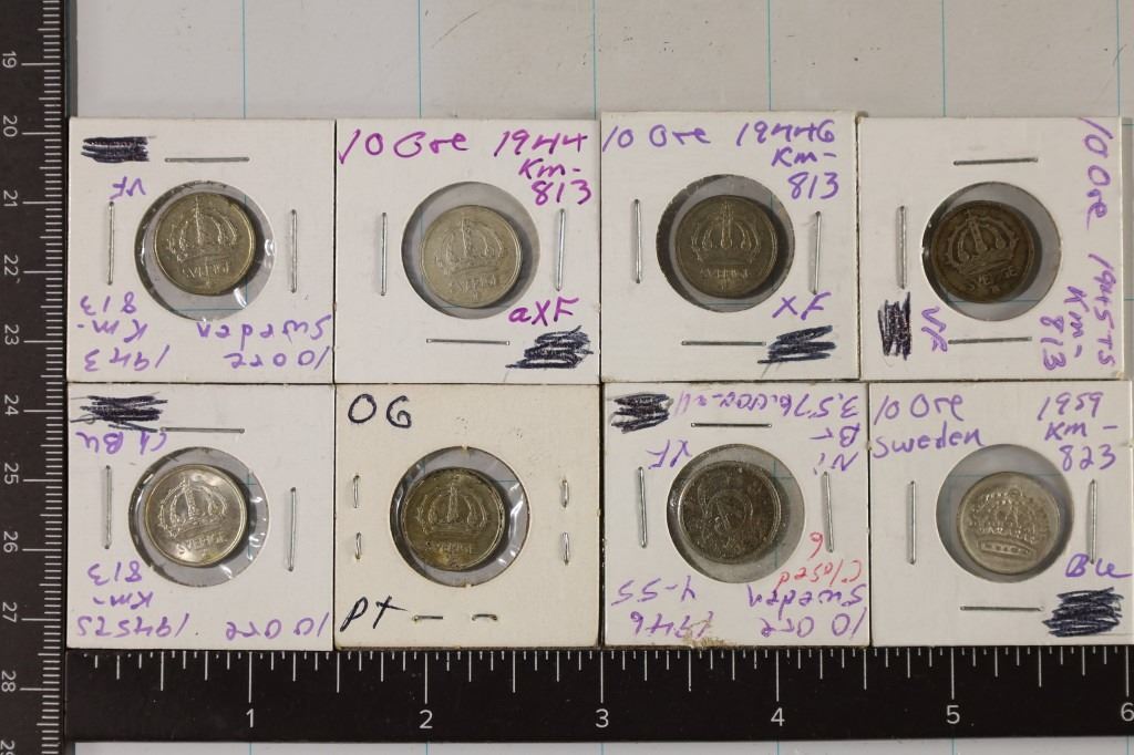 #63 Lot 63 8-SWEDEN SILVER 10 ORE .148 OZ. ASW TOTAL: