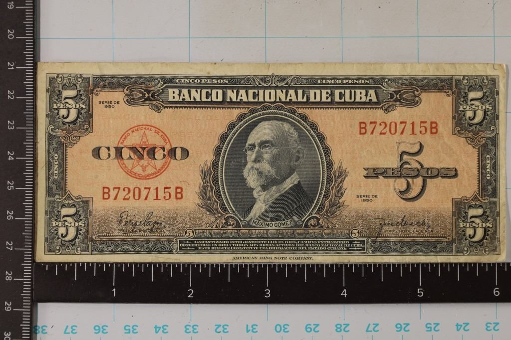 #75 Lot 75 1950 CUBA 1 PESO BILL