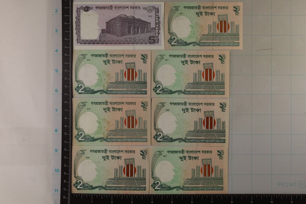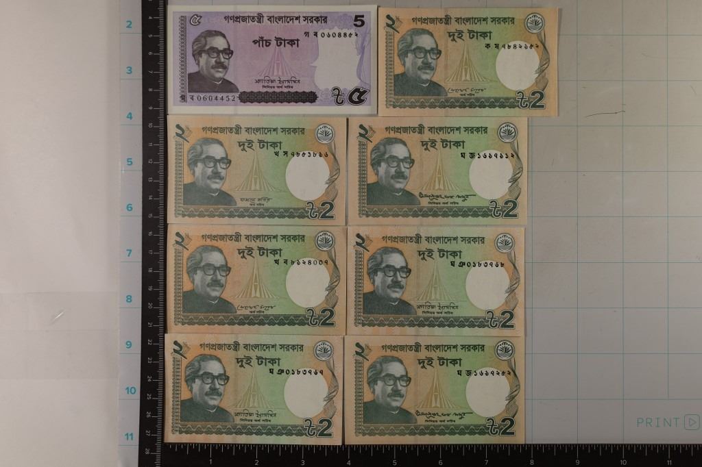 #80 Lot 80 8-BANGLADESH 7-2 TAKA AND 1-5 TAKA CRISP UNC