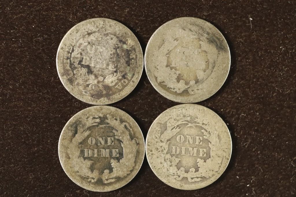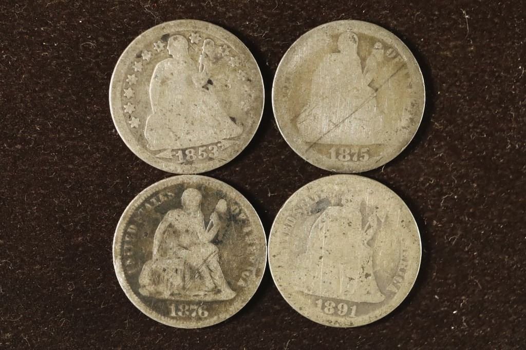 #91 Lot 91 4-SEATED LIBERTY DIMES: 1853 WITH ARROWS, 1875,