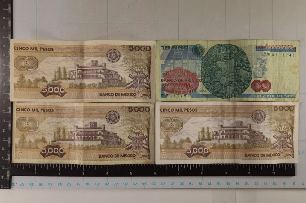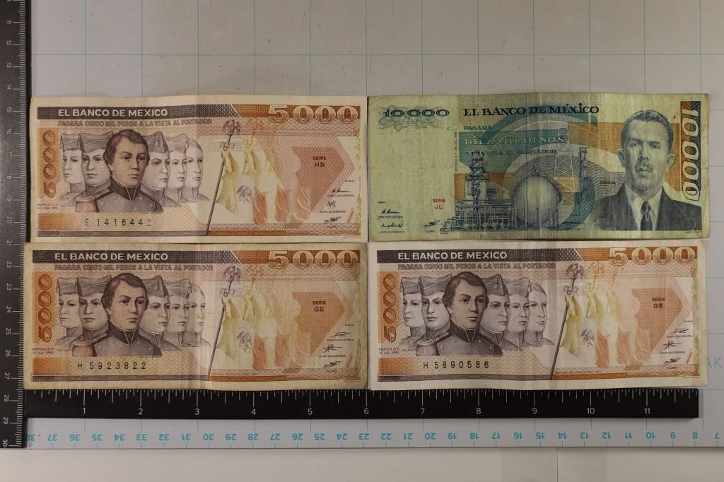 #100 Lot 100 4-MEXICO BILLS: 2-1985-5000 PESO, 1987-5000 PESO,