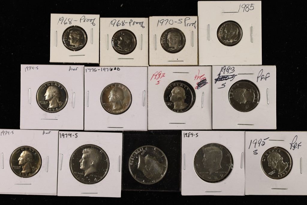 #111 Lot 111 13 US PF COINS 4 ROOSEVELT DIMES, 6 WASHINGTON