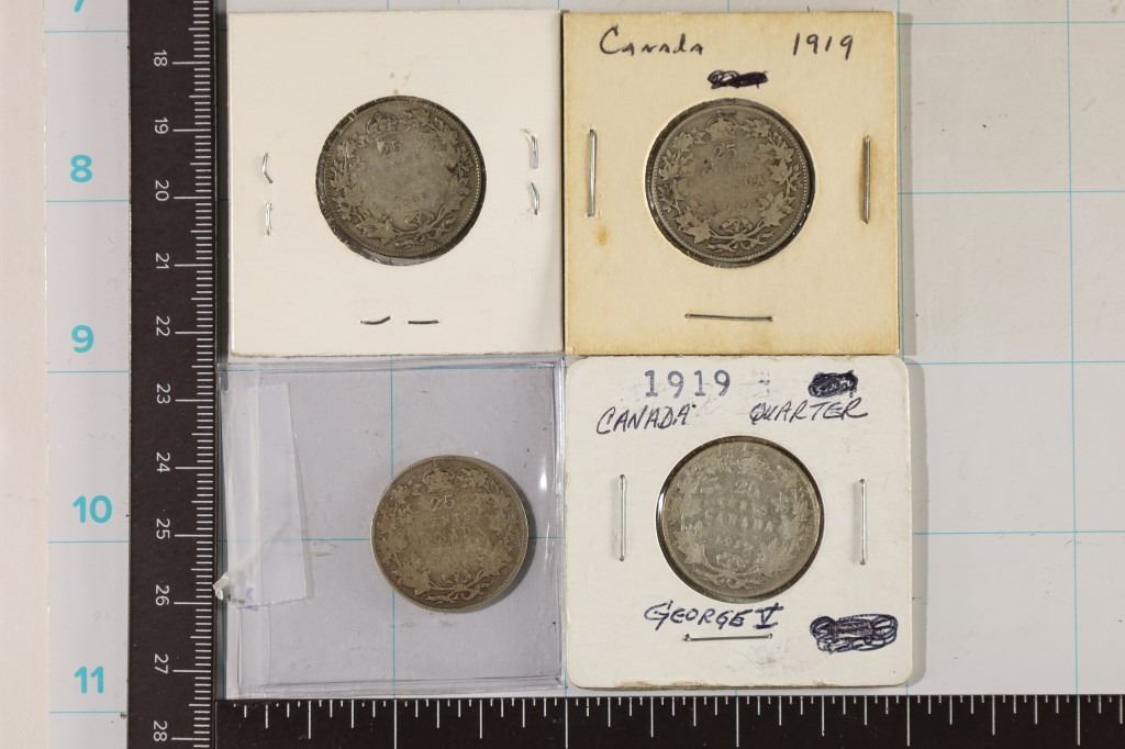 #128 Lot 128 2-1919, 1935 & 1 NO DATE SILVER CANADA 25 CENTS: