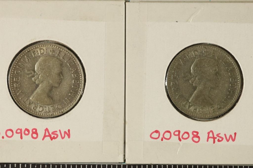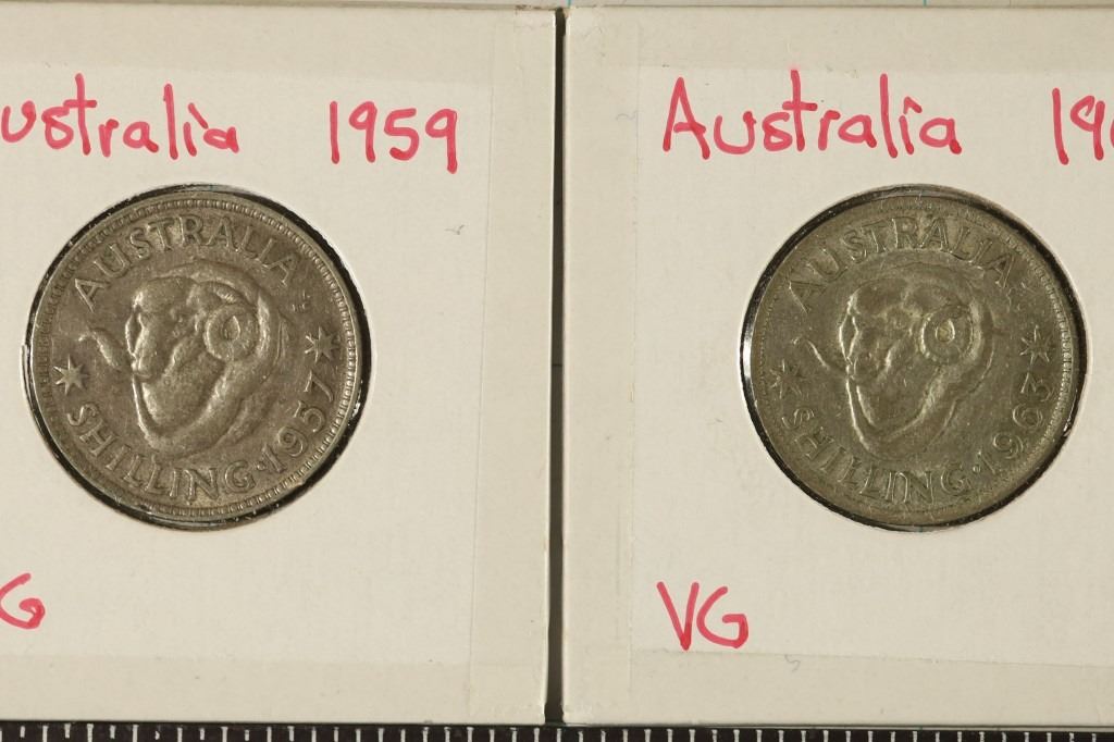 #143 Lot 143 1959 & 1963 AUSTRALIA SILVER 1 SHILLING .1816