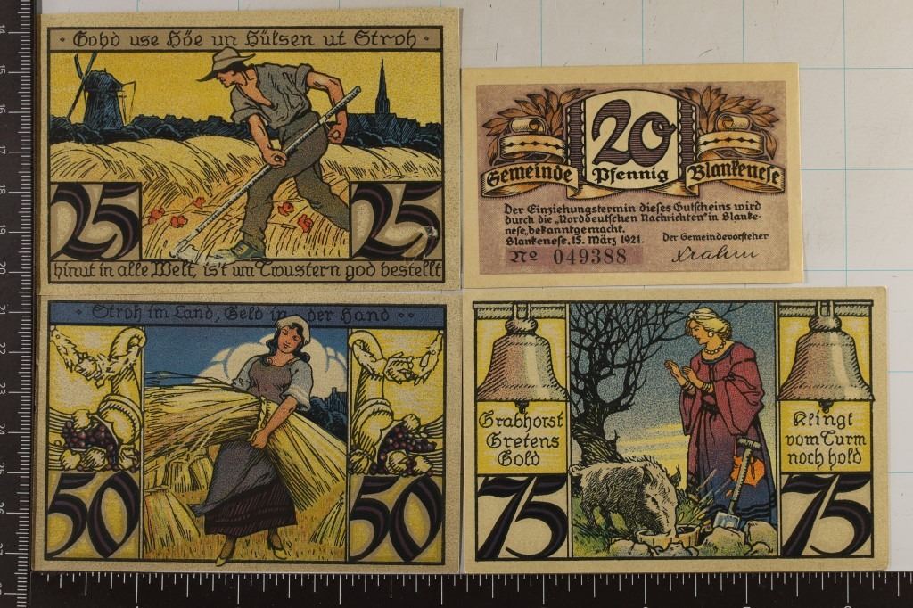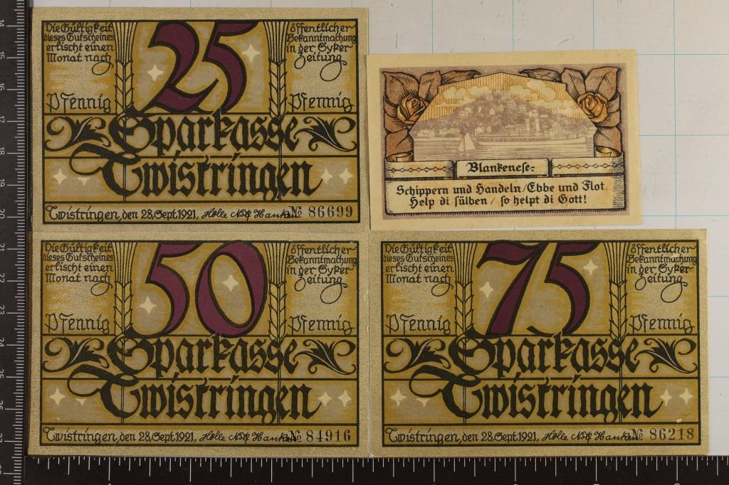 #150 Lot 150 4-1921 GERMAN CRISP UNC NOTGELDS: 20, 25, 50 & 75