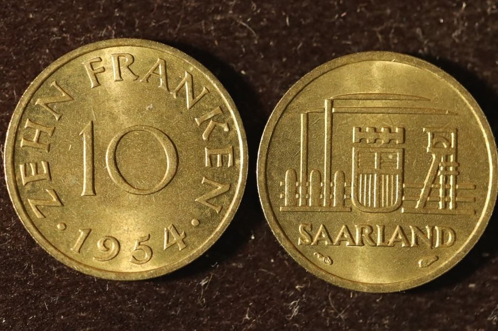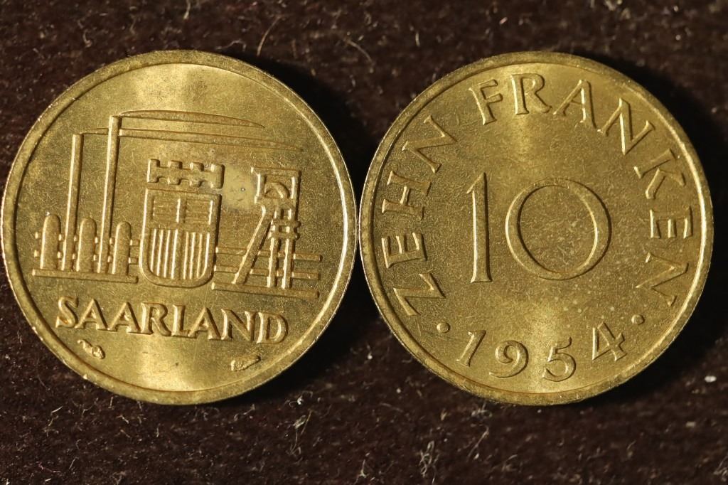 #168 Lot 168 2-1954 SAARLAND UNC 10 FRANKEN COINS
