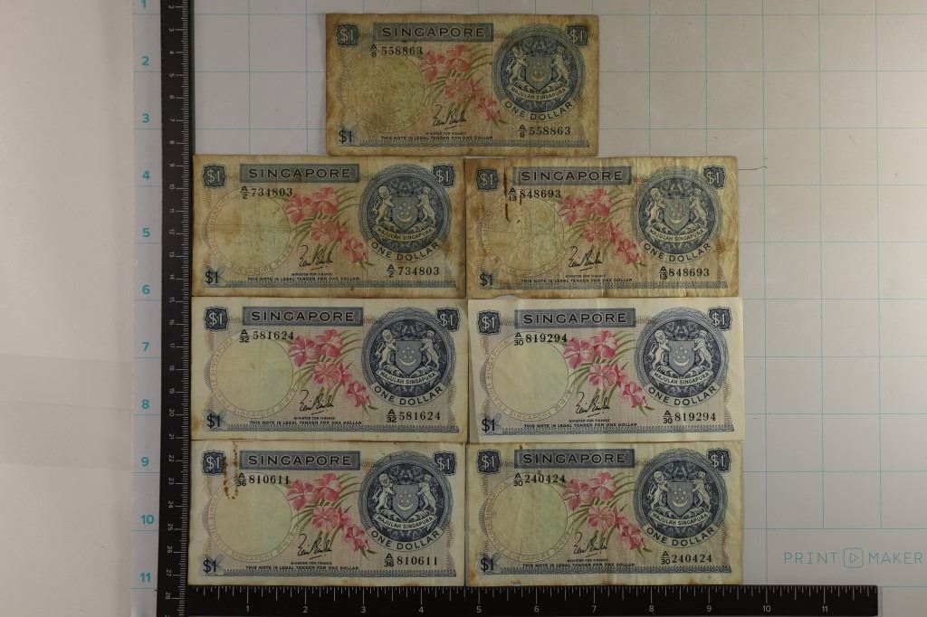 #170 Lot 170 7-1967 SIGNAPORE $1 BILL ONE WITH PAPERCLIP MARK