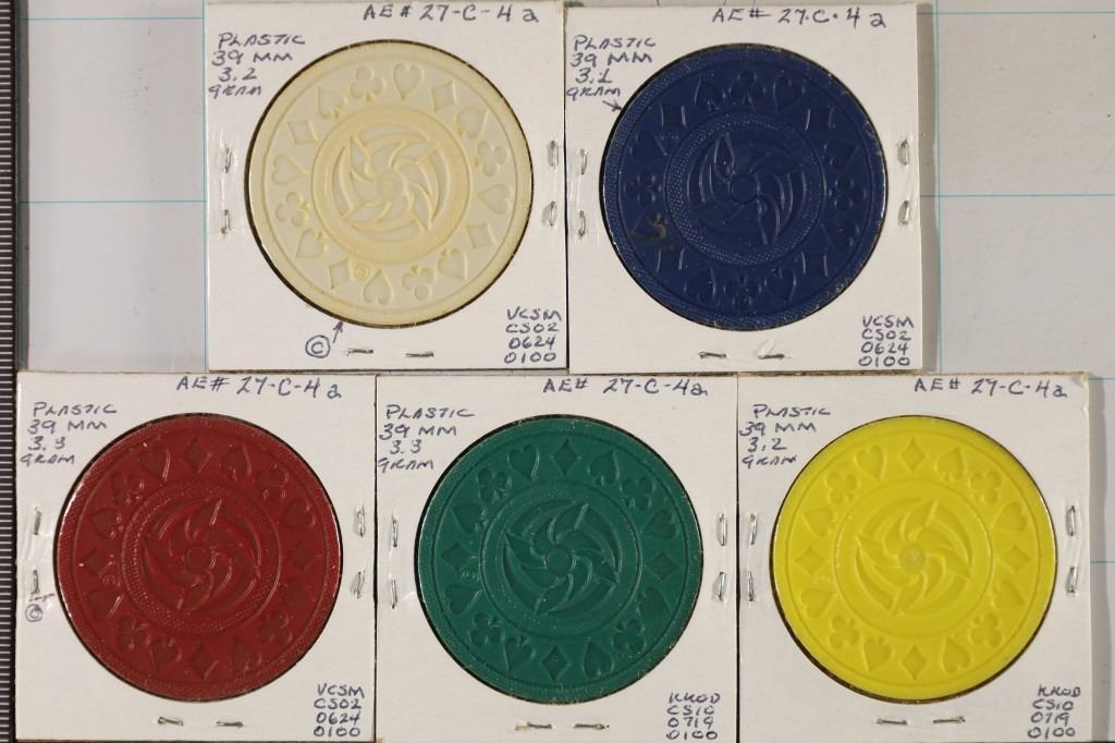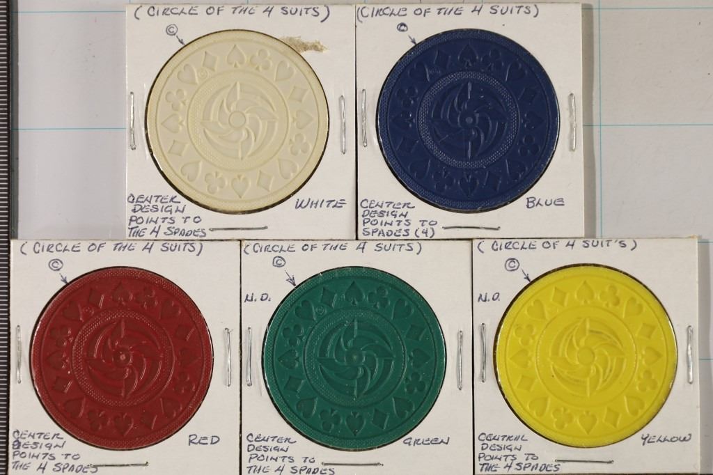 #174 Lot 174 5-CIRCLE OF THE FOUR SUITS POKER CHIPS, WHITE,