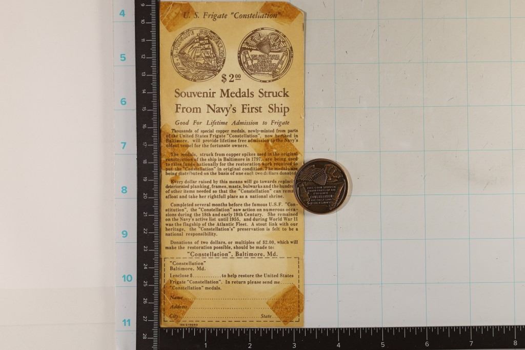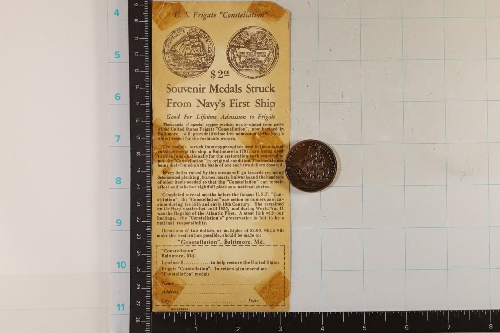 #176 Lot 176 US FRIGATE CONSTELATION SOUVENIR MEDAL STRUCK