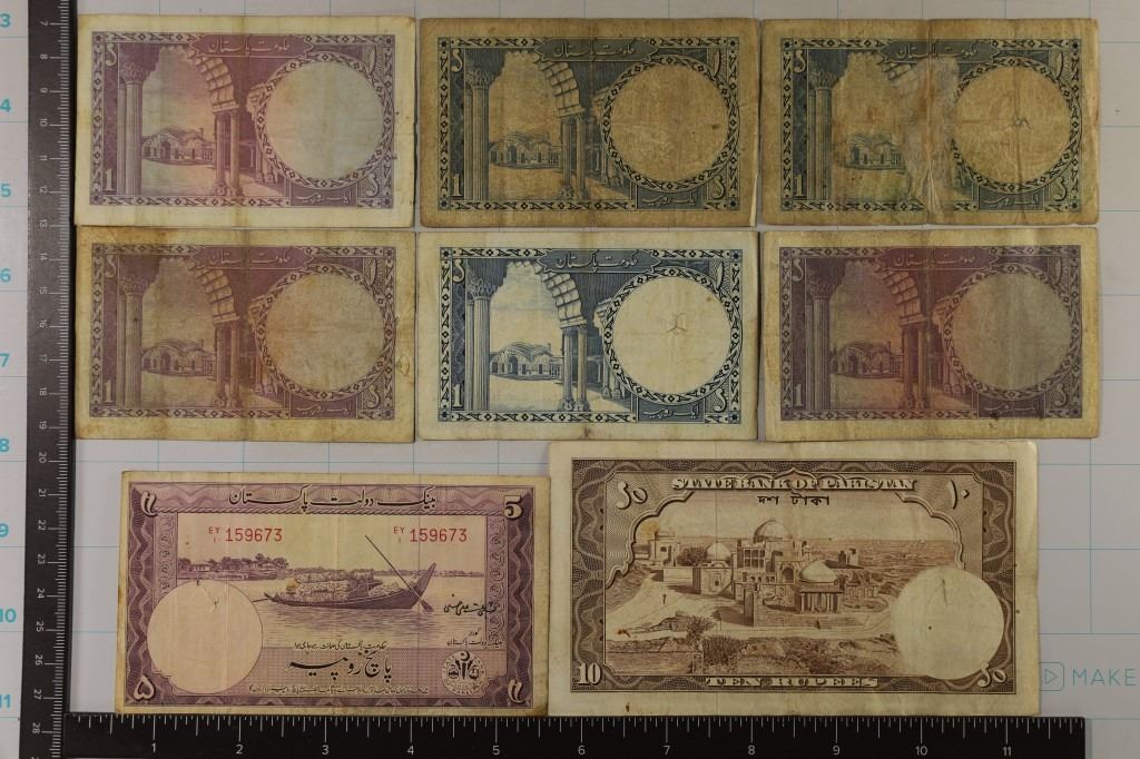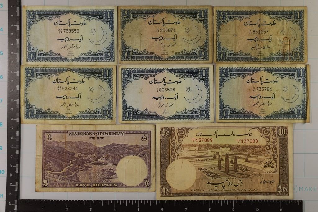 #180 Lot 180 8 PAKISTAN BILLS: 6-ONE RUPEE, 5 & 10 RUPEE