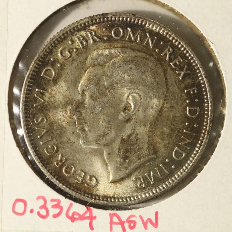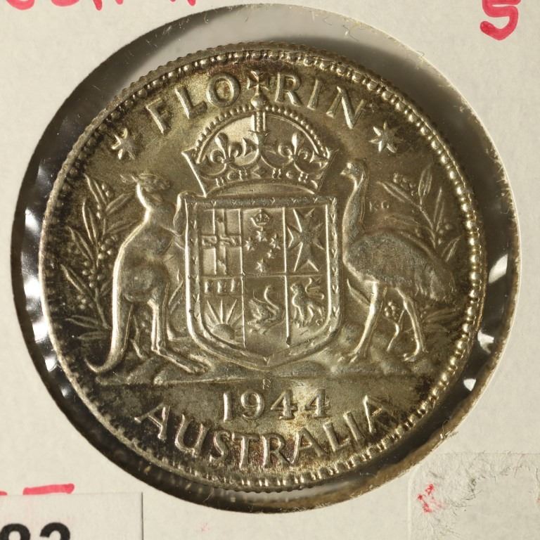 #183 Lot 183 1944-S AUSTRALIA SILVER UNC FLORIN .3364 OZ. ASW