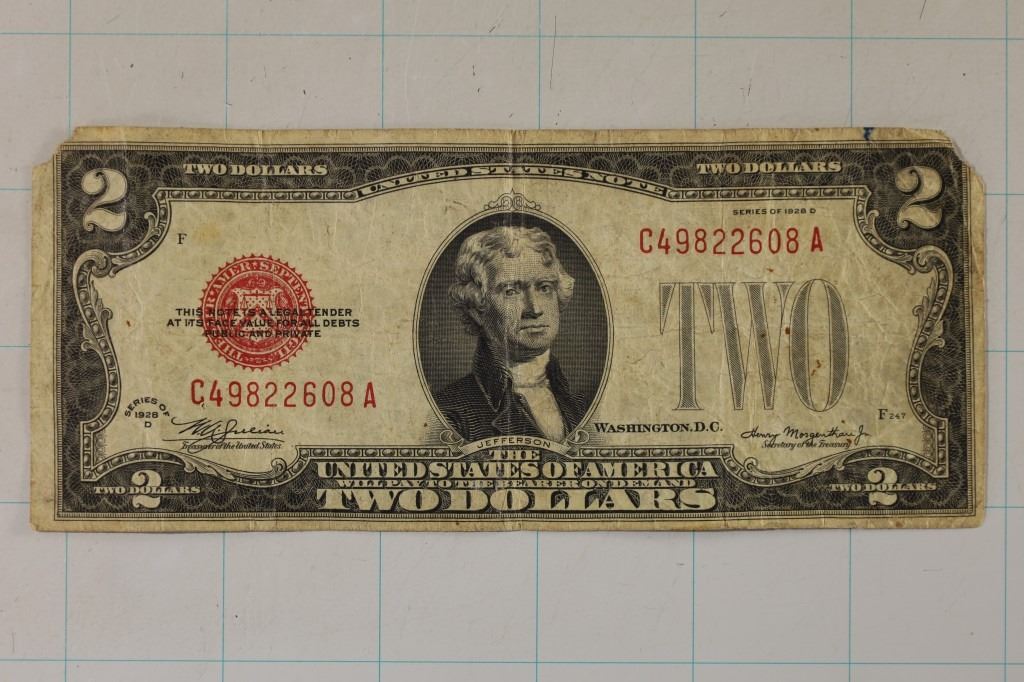 #185 Lot 185 1928-D US $2 RED SEAL NOTE MISSING TOP CORNERS