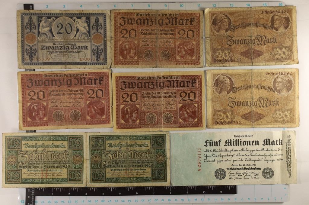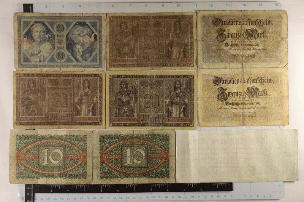 #190 Lot 190 9 ASSORTED GERMAN BILLS: 2-1920-10 MARK, 1915-20