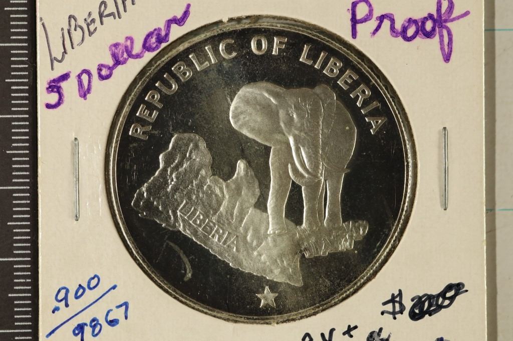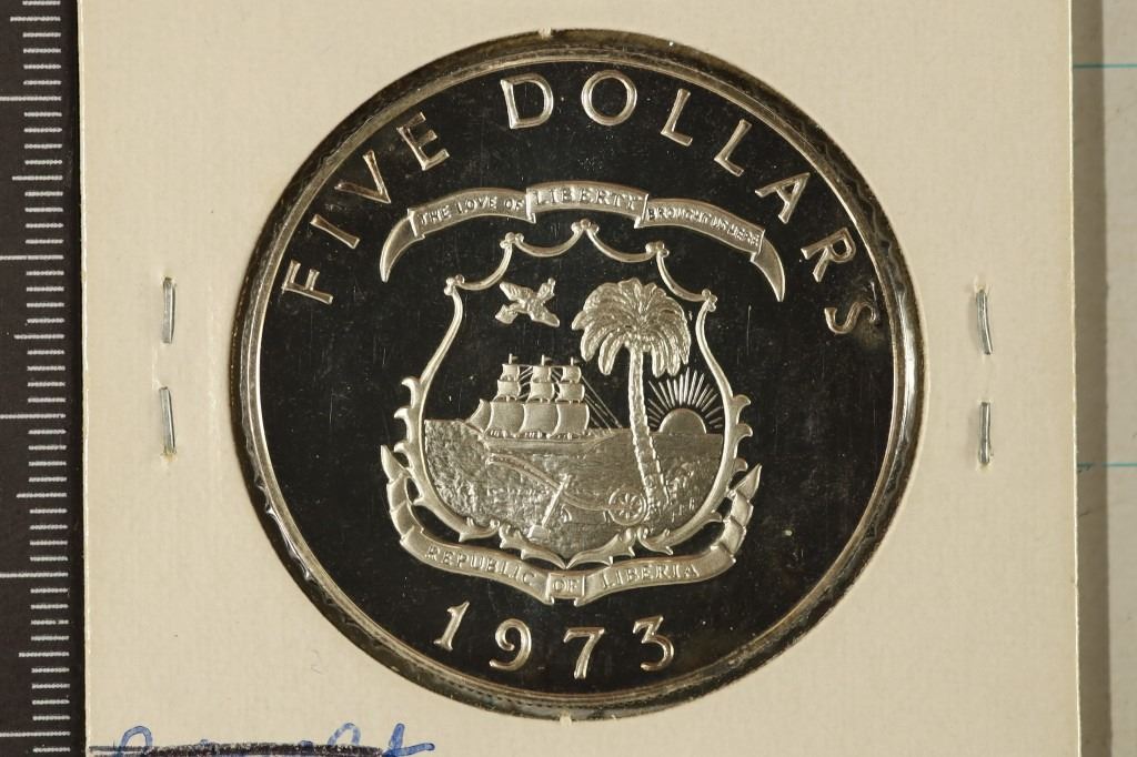 #203 Lot 203 1973 LIBERIA SILVER PROOF $5 COIN .9867 OZ. ASW