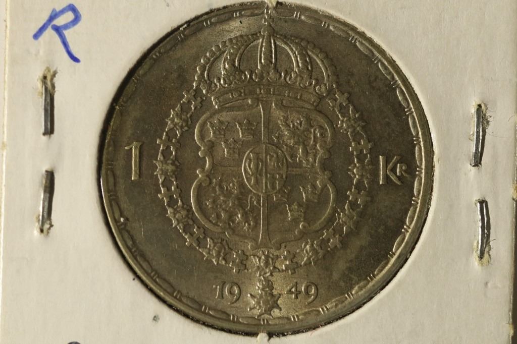 #223 Lot 223 1949 SWEDEN SILVER 1 KRONA AU / UNC .09 OZ. ASW